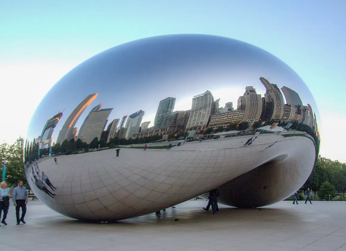Sobald man den Millennium Park betritt, wird man von einem der bekanntesten Wahrzeichen Chicagos begrüßt: dem Cloud Gate, das von den Einheimischen liebevoll „The Bean“ genannt wird. Diese faszinierende Skulptur aus poliertem Edelstahl, die von Anish Kapoorentworfen wurde, reflektiert die Skyline von Chicago und den Himmel darüber in verzerrten, fast surrealen Formen. Es macht einfach Spaß, um die „Bohne“ herumzugehen, die Spiegelungen zu bewundern und natürlich ein paar Fotos zu schießen – der ultimative Beweis, dass man in Chicago war.