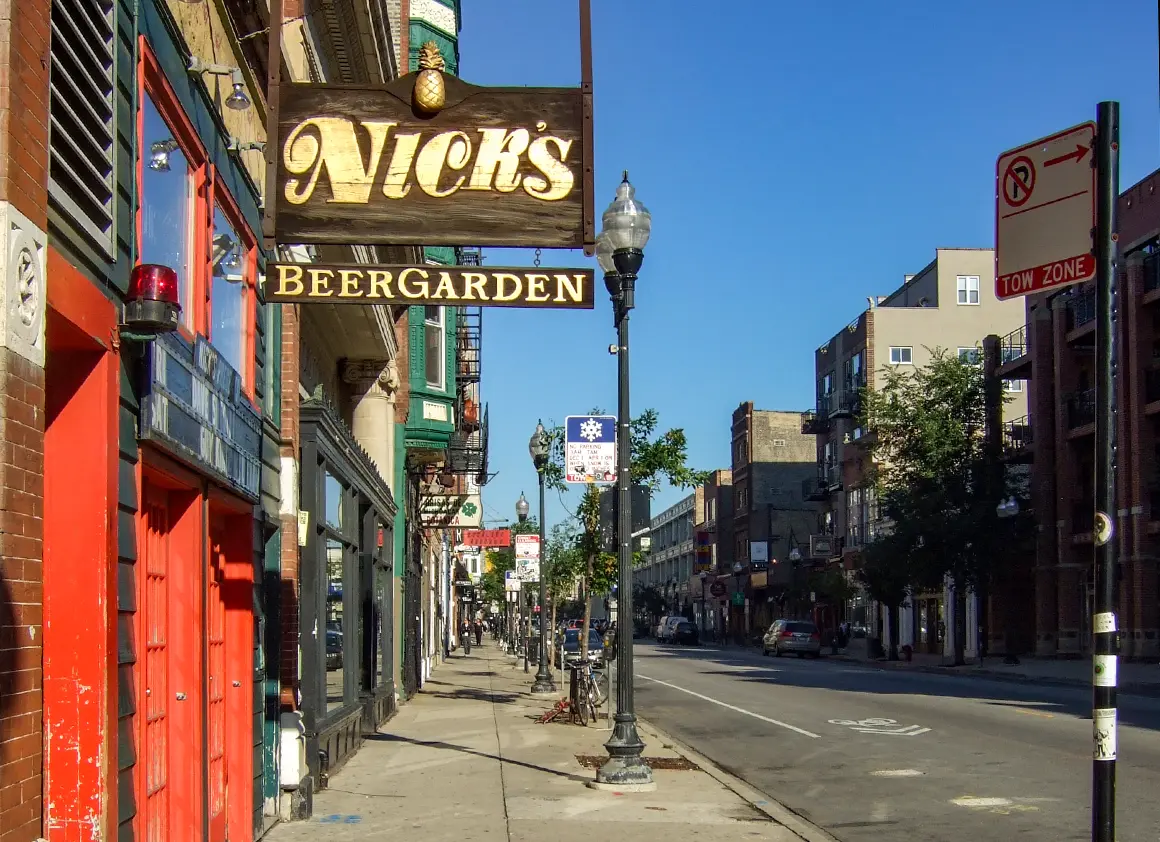 Wir waren im Stadtteil Wicker Park, der für seine lebendige Atmosphäre und die vielen kleinen Restaurants und Boutiquen bekannt ist. Die Hochbahnhaltestelle Damen war nur zehn Minuten zu Fuß entfernt, und unser Weg dorthin führte uns vorbei an einer schier endlosen Reihe von Restaurants und Cafés. Wir konnten uns das Schmunzeln nicht verkneifen: Wo waren die alle gestern, als wir hungrig durch die Straßen streiften und uns schließlich mit einem Sandwich bei Subway trösten mussten?