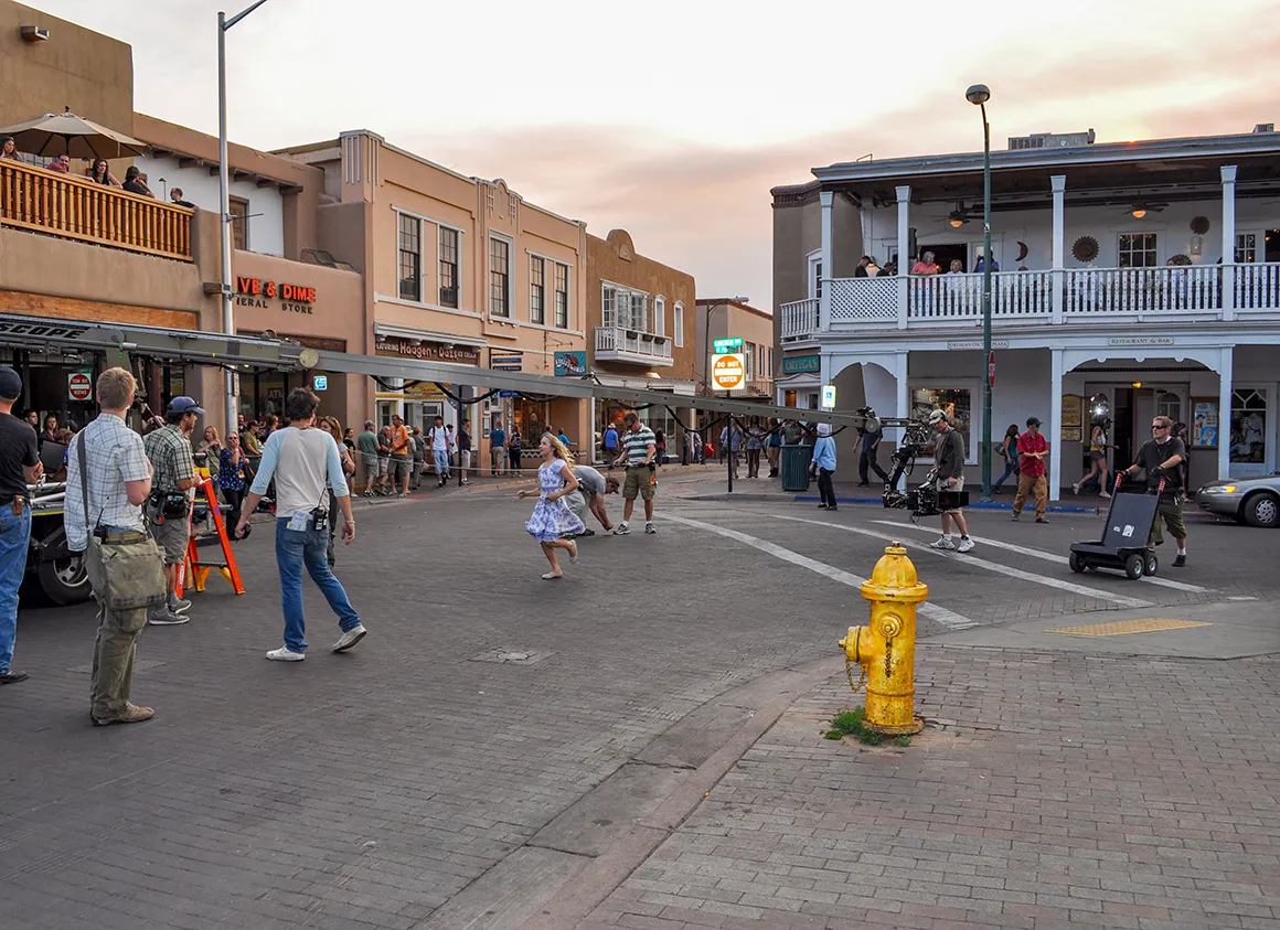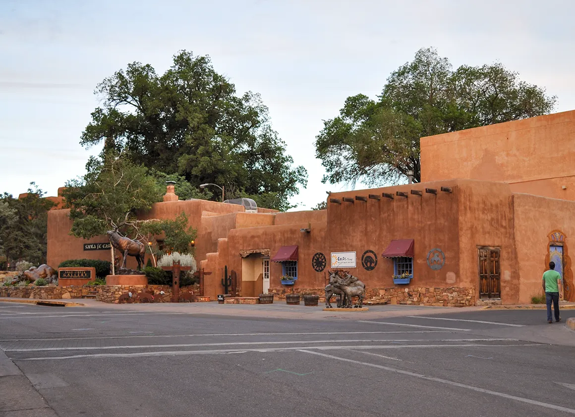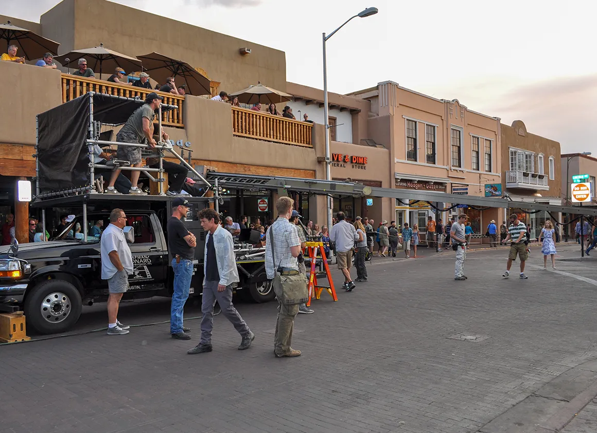 Unser erster Halt in Santa Fe war der Santa Fe Plaza, der für den Verkehr gesperrt war, da dort gerade ein Filmset aufgebaut wurde. Also parkten wir etwas abseits und erkundeten die Plaza zu Fuß. Es war aufregend, den Filmemachern bei ihrer Arbeit zuzusehen. Nach einer Weile knurrten unsere Mägen, also suchten wir ein Restaurant auf. Unser Glückstreffer war die San Francisco Street, wo wir ein gemütliches Restaurant mit vernünftigen Preisen fanden. Das Essen war köstlich und erfüllte unsere hungrigen Bäuche.