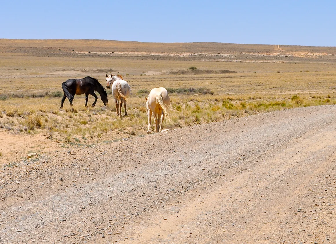 Der Rückweg zur nächsten befestigten Straße gestaltete sich abenteuerlich, aber hey, wir haben es (irgendwie) geschafft! Unterwegs begegneten wir immer wieder wilden Mustangs, die majestätisch über die weite Landschaft galoppierten. Ein echtes Spektakel!