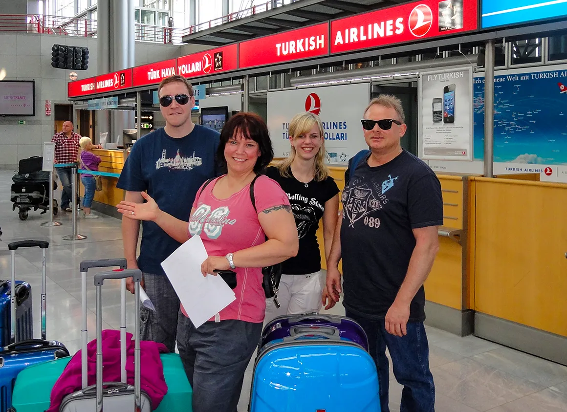 Der erste Reisetag beginnt gesammelt. Keine halben Abschiede, kein logistischem Chaos mit Treffpunkten irgendwo im Nirgendwo. Wir fahren alle zusammen nach Stuttgart zum Flughafen. Nadine sitzt am Steuer, Stefan und ich daneben, Bianca und Patrick mit im Gepäck – im wahrsten Sinne. Noch ist alles überschaubar, noch fühlt es sich mehr nach „wir bringen jemanden weg“ als nach „wir fahren jetzt wirklich los“.