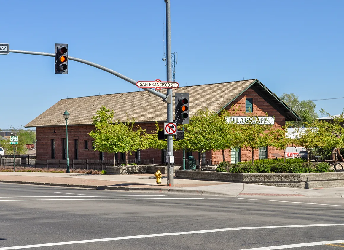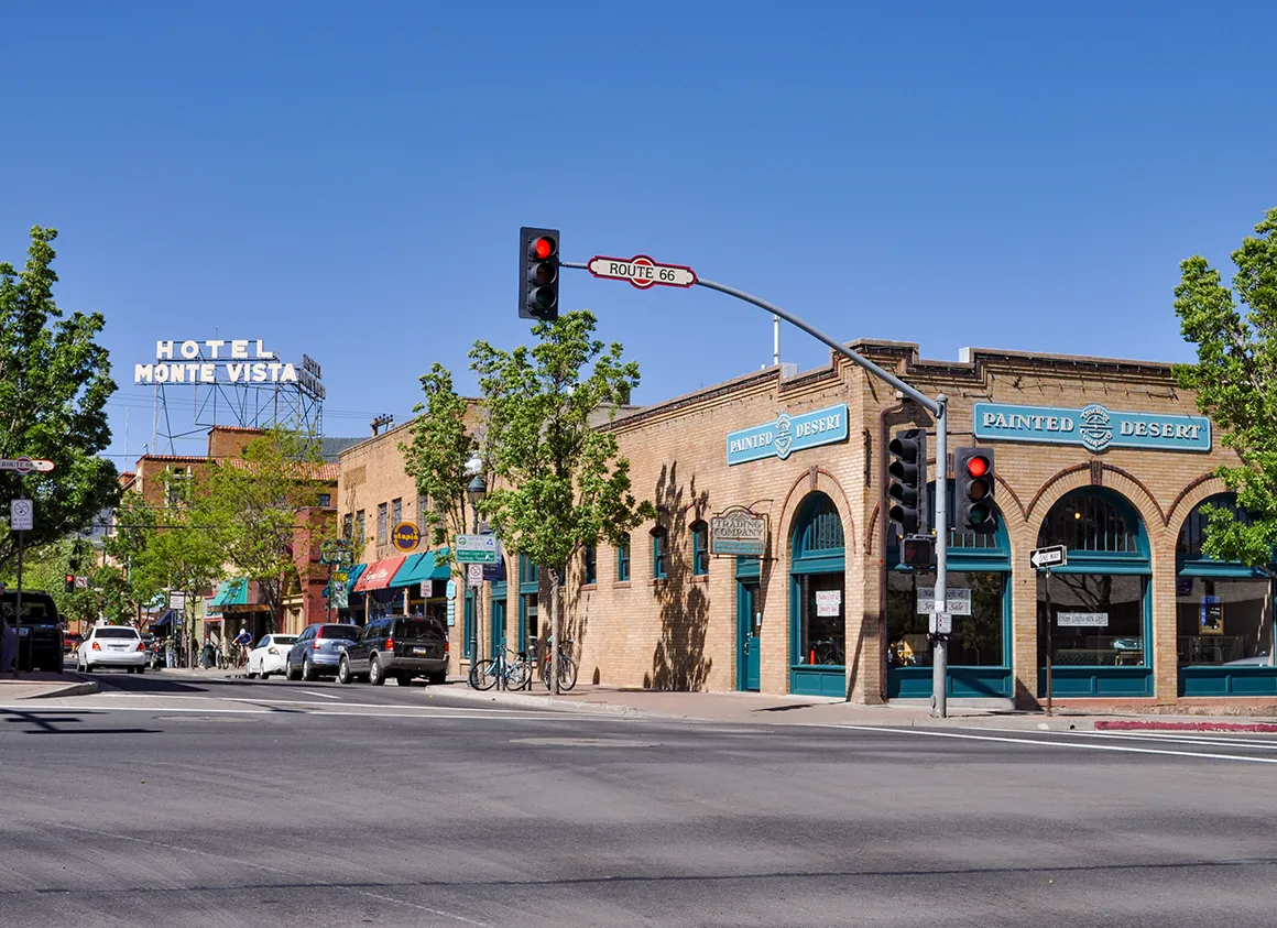 Hinter Sedona beruhigt sich die Landschaft kurz – als würde sie tief Luft holen – und dann geht es weiter auf dem Highway 89 Richtung Flagstaff. Die Luft wird kühler, die Bäume dichter, die Farben etwas weniger dramatisch, dafür echter. Flagstaff wirkt wie ein Ort, der nicht schreit, sondern einfach da ist. Hochschulstadt, Eisenbahnknoten, Ausgangspunkt für alles Mögliche. Wir machen einen kurzen Spaziergang, ohne großen Plan, lassen uns treiben. Ein paar Cafés, alte Gebäude, dieses entspannte „Hier kann man bleiben“-Gefühl. Lange bleiben wir nicht. Die Straße ruft.