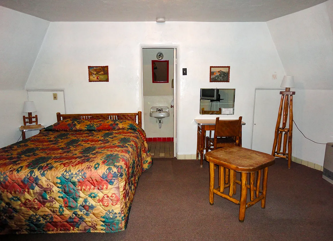 Das Wigwam Motel ist kein Einzelstück. Zwischen den 1930er- und 1950er-Jahren wurden insgesamt sieben dieser Motels entlang der Mother Road gebaut. Heute sind nur noch zwei übrig: eines hier in Holbrook und eines in San Bernardino. Der Rest ist Geschichte. Oder Parkplatz.