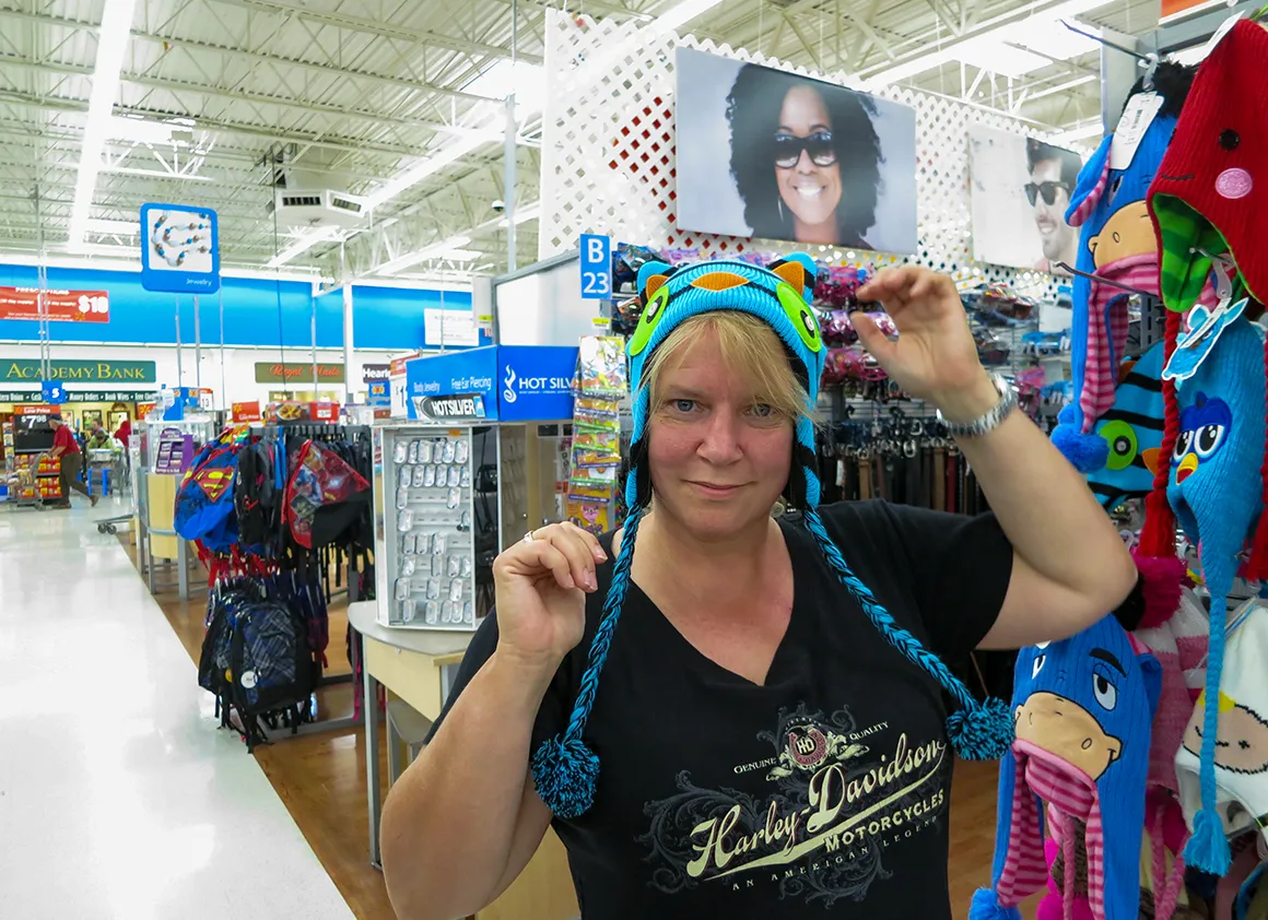 Und weil ein perfekter Reisetag ohne Walmart nur ein halber ist, folgt danach der obligatorische Abstecher. Walmart. Der Ort, an dem man eigentlich nur Getränke kaufen will – und eine Stunde später mit Sonnenhüten, Angelruten, Neon-Accessoires, merkwürdigen Hüten und Dingen dasteht, von denen man vor zehn Minuten noch nicht wusste, dass man sie dringend braucht. Es gibt wirklich alles. Und noch ein bisschen mehr.