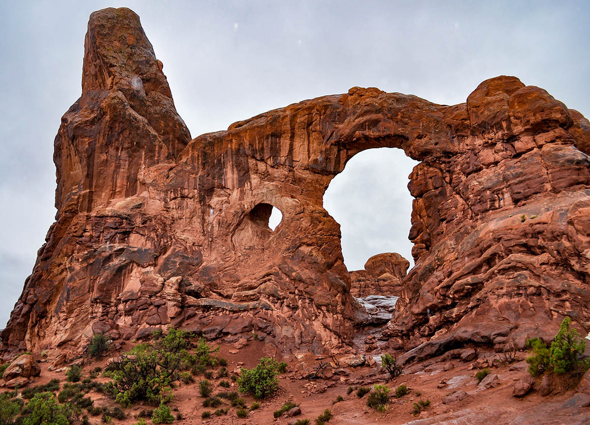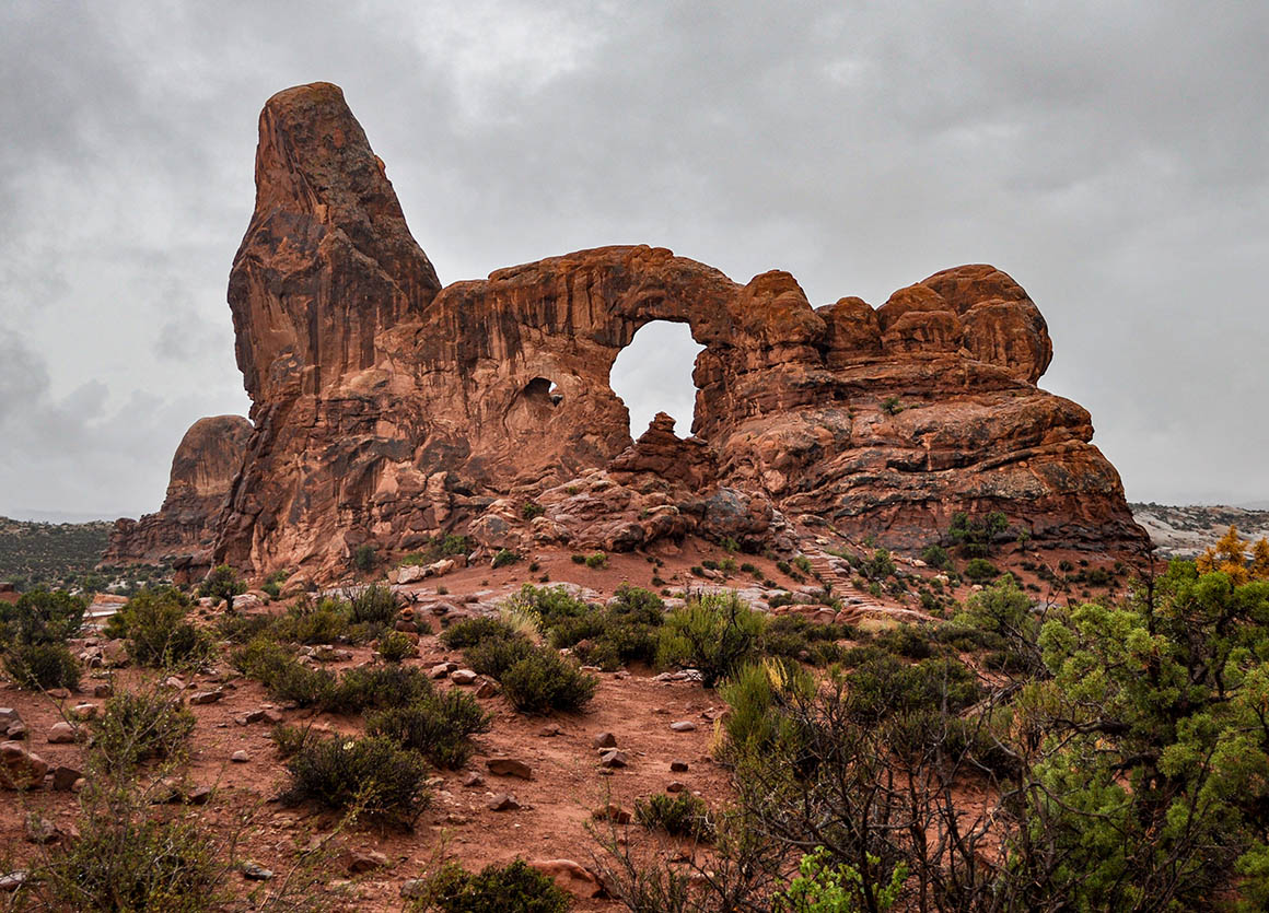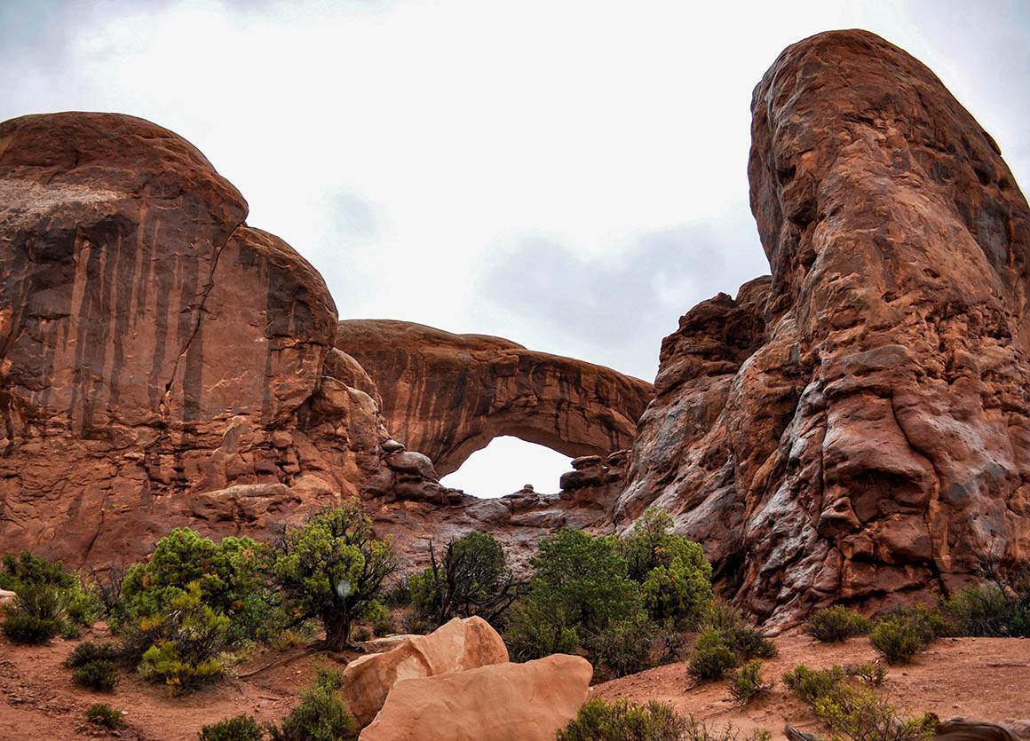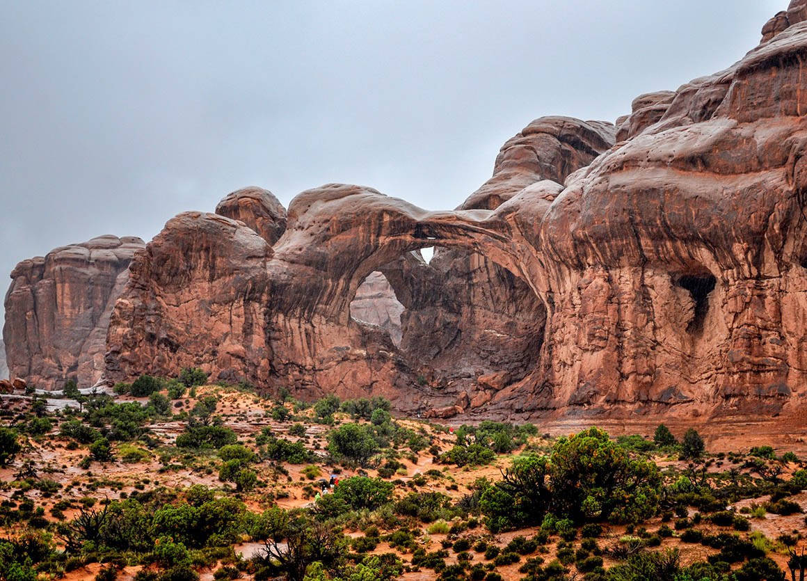 Wir hielten trotzdem immer wieder an, denn selbst bei miesem Wetter ist Arches immer noch… na ja, Arches. Und irgendwo zwischen Regenperlen auf der Windschutzscheibe und nassem Sandstein liegt ja bekanntlich auch ein bisschen Magie.