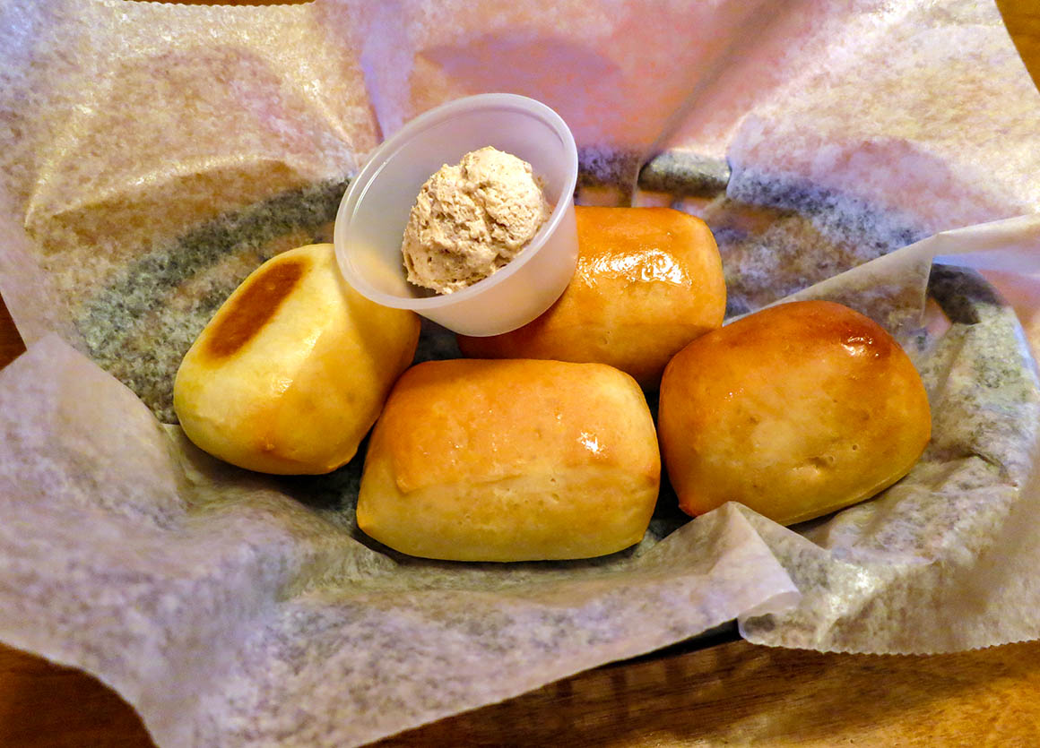 Steaks, Brot mit Zimtbutter, Portionen, bei denen man sich kurz fragt, ob man nicht aus Versehen für drei bestellt hat – genau das Richtige nach Tagen voller Staub, Felsen und Höhenmeter. Wir essen, was das Zeug hält, und stellen fest: Der amerikanische Steak-Standard enttäuscht einfach nie.