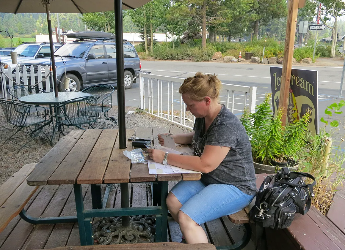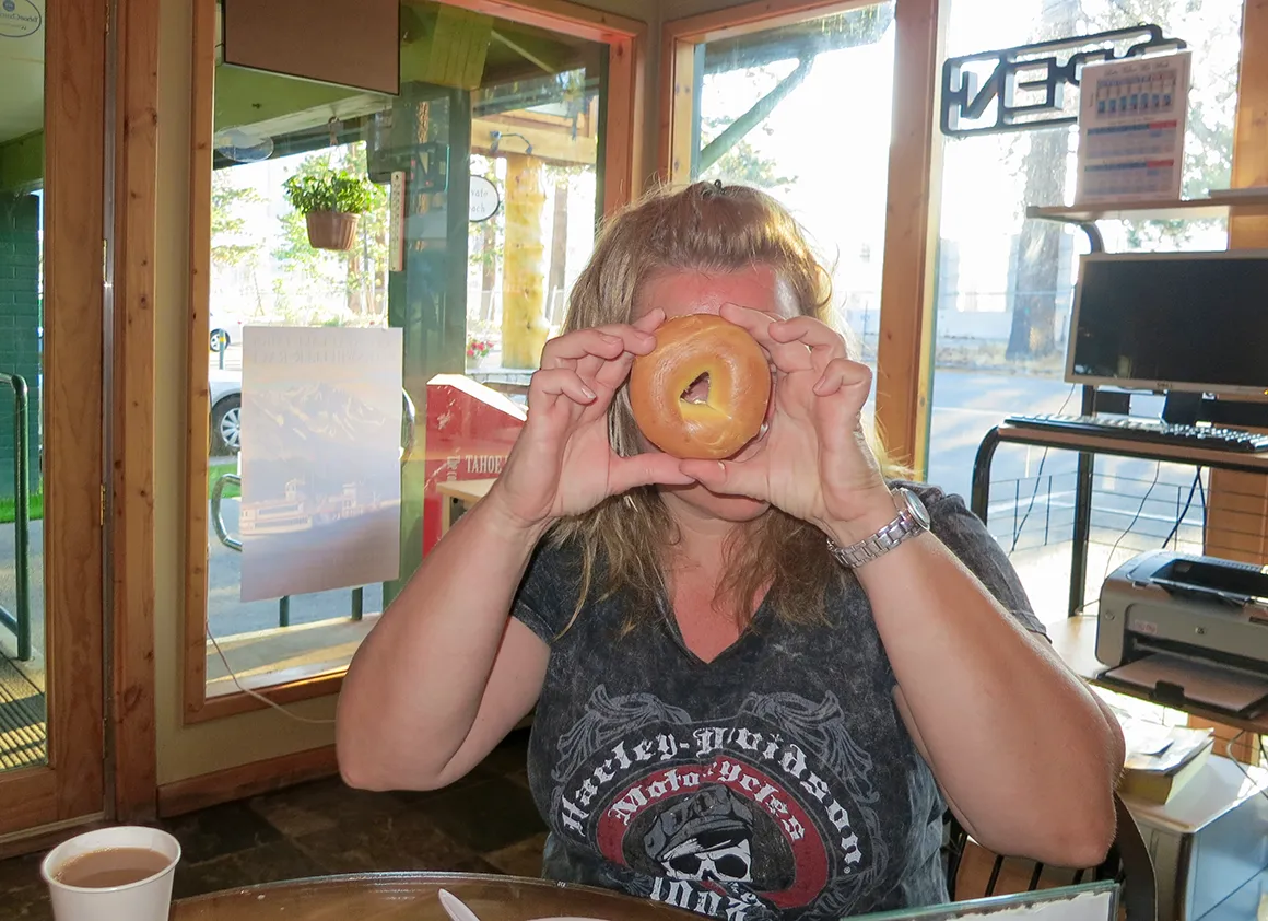 In Tahoe City legen wir eine Pause ein – Staudamm und Café, eine unschlagbare Kombination. Im Dam Café gibt es Kaffee, eine kleine Verschnaufpause und dieses angenehme Gefühl, genau zur richtigen Zeit am richtigen Ort zu sein. Menschen kommen, Menschen gehen, der Fluss rauscht unter dem Damm hindurch, und wir sitzen einfach da und lassen die Eindrücke sacken.