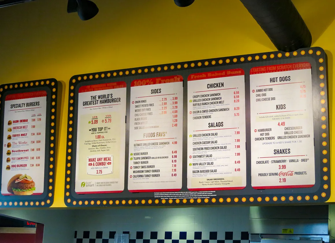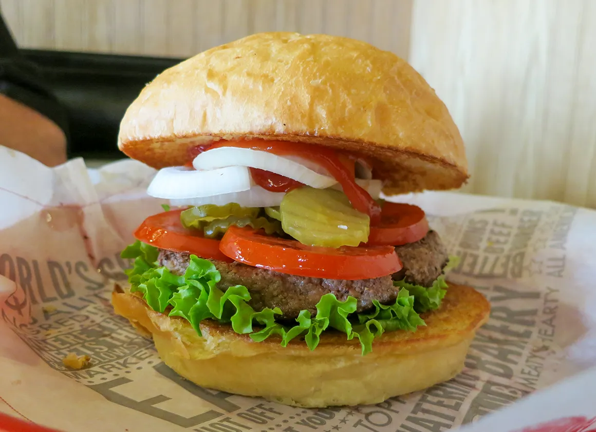 Ganz spontan legen wir dann noch einen Stopp bei Legends at Sparks ein. Eigentlich nur kurz schauen. Wirklich. Klappt natürlich nicht. Und weil Shopping hungrig macht, landen wir konsequent bei Fuddruckers. Große Burger, ordentlich belegt, genau richtig nach einem langen Tag zwischen Bergen, Westernromantik und Neonlichtern.