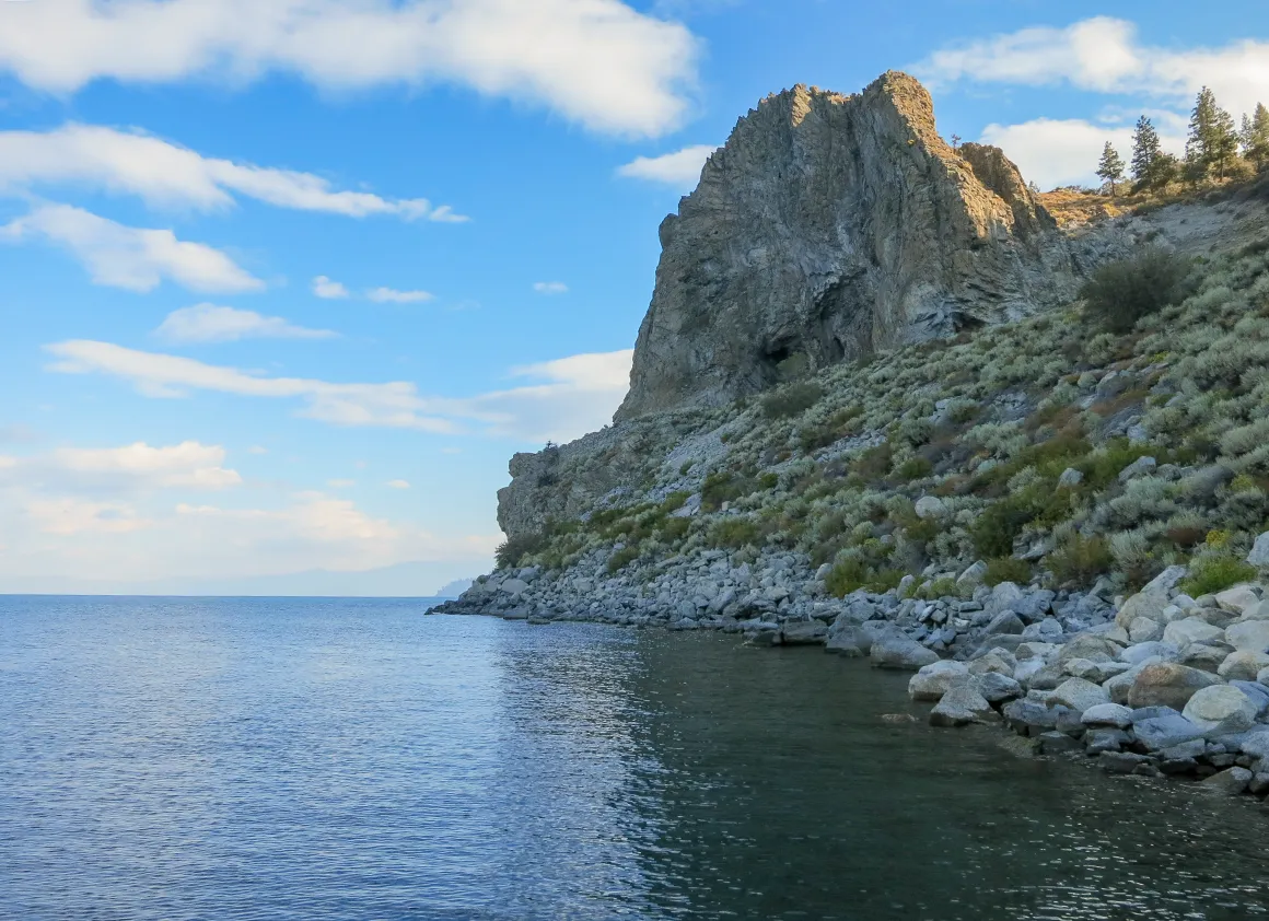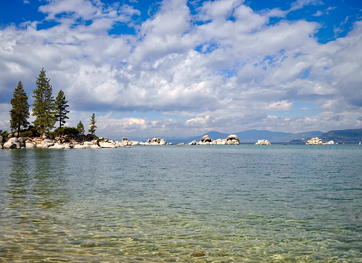 Auf der Ostseite, rund um Cave Rock und Zephyr Cove, ragen dramatische Felsformationen direkt aus dem Wasser. Die Straße zieht sich hier etwa hundert Meter oberhalb des Sees durch Felswände und Kiefernwälder. Kurve folgt auf Kurve, immer wieder dieser Blick nach unten auf das glasklare Wasser. Einer dieser Abschnitte, bei denen man automatisch langsamer fährt – nicht aus Vorsicht, sondern aus Ehrfurcht.