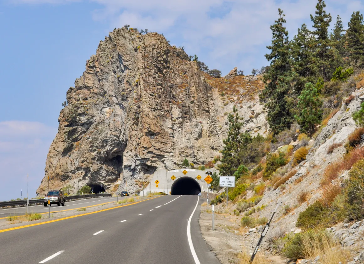 Wir verlassen Virginia City über eine herrlich kurvenreiche Straße, die sich durch die Sierra Nevada windet. Noch einmal Wildwest-Gefühl, noch einmal große Landschaft. Die Berge stehen mächtig am Horizont, die Luft ist klar, und dieser Abschnitt fühlt sich an wie ein stiller Übergang – vom historischen Staub der Minenstadt zurück in die Gegenwart.