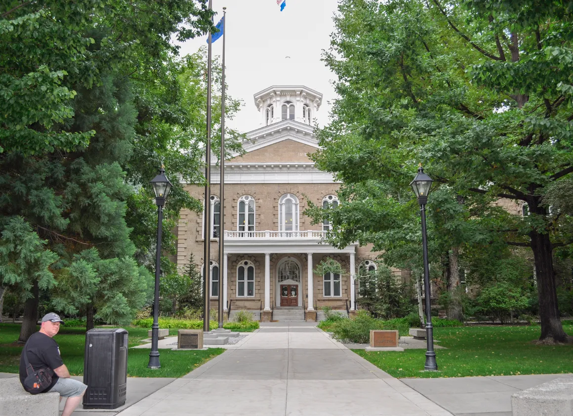 Nach all den Naturmomenten schalten wir heute kurz auf Stadt & Geschichte um. Nächster Halt: Carson City, die überraschend charmante Hauptstadt von Nevada. Kein Großstadttrubel, kein Protz – Carson City wirkt eher wie eine gepflegte Kleinstadt mit politischer Verantwortung. Wir schauen uns das Nevada State Capitol an, spazieren über die Main Street, machen ein Foto vom Capitol – das reicht uns für heute. Man muss nicht alles sezieren. Manchmal genügt ein Eindruck.