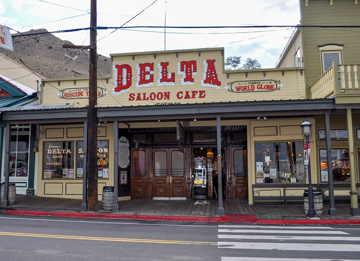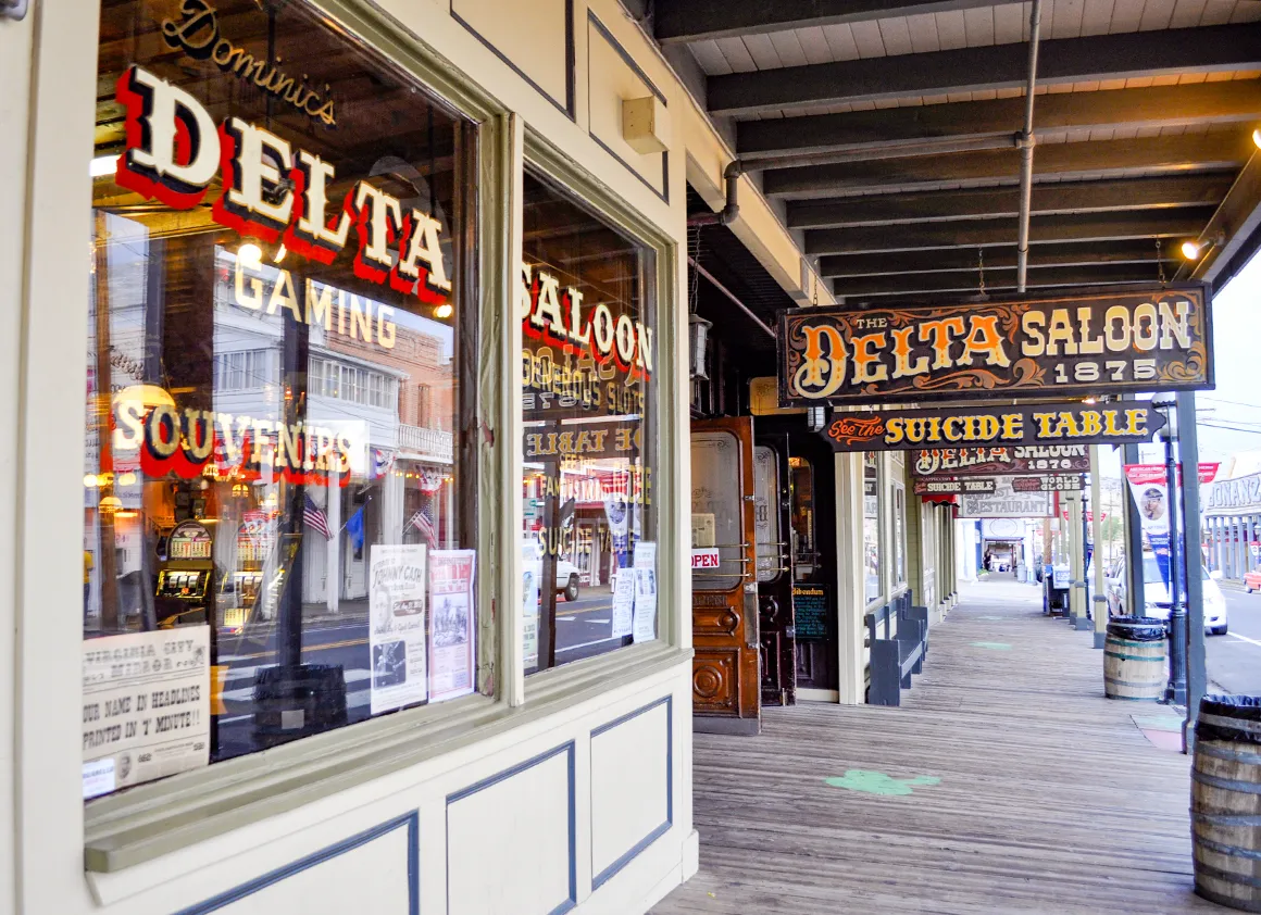 Unsere Neugier zieht uns in den Delta Saloon. Berühmt – oder berüchtigt – für seinen sogenannten Suicide Table. Der Saloon selbst enttäuscht uns allerdings etwas. Statt staubigem Westernflair eher ein schlecht belüftetes Spielcasino mit wenig Atmosphäre. Aber dann sehen wir ihn: den Tisch. Hinter Glas. Mit Erklärung. Und plötzlich wird es stiller im Kopf.