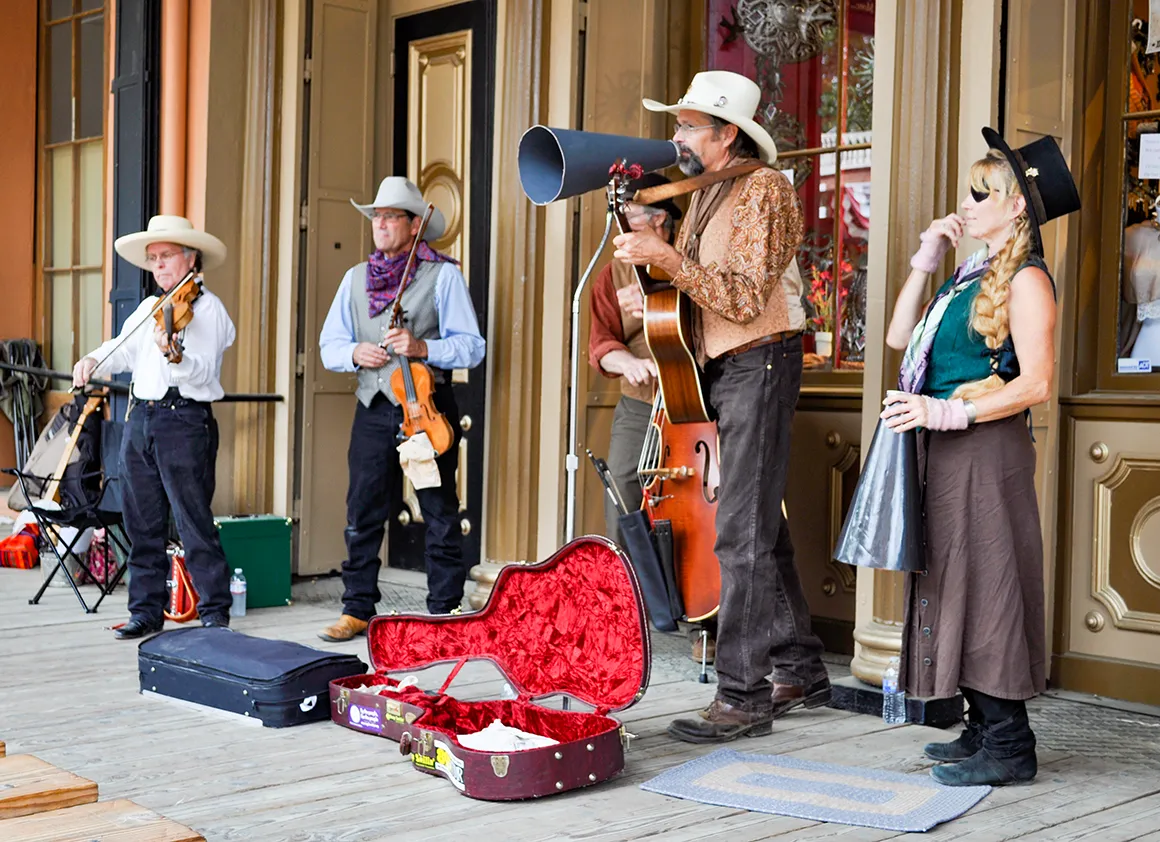 Die Atmosphäre ist großartig. An jeder Ecke passiert etwas. Musiker sitzen auf Holzveranden und spielen, als gäbe es Spotify noch nicht. Schmiede lassen Funken fliegen, Händler preisen ihre Waren an, und zwischendurch kommt es zu inszenierten Schießereien, bei denen man instinktiv einen Schritt zurücktritt – obwohl man weiß, dass hier niemand ernsthaft getroffen wird. Frauen halten leidenschaftliche Reden über Rechte und Selbstbestimmung, was wunderbar zeigt, dass selbst im Wilden Westen nicht alles nur aus Colts und Cowboyhüten bestand.