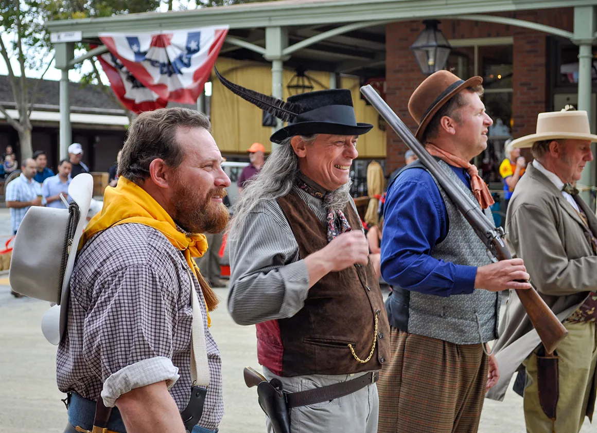 Nun aber: auf zur Labour-Day-Party. Und zwar nicht irgendeiner, sondern mitten hinein in eine Zeitmaschine mit Holzfassaden, Staub auf dem Boden und erstaunlich viel Filz auf den Köpfen.