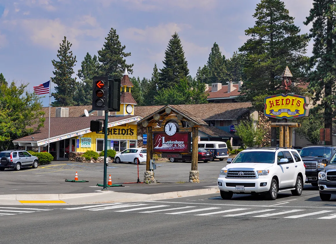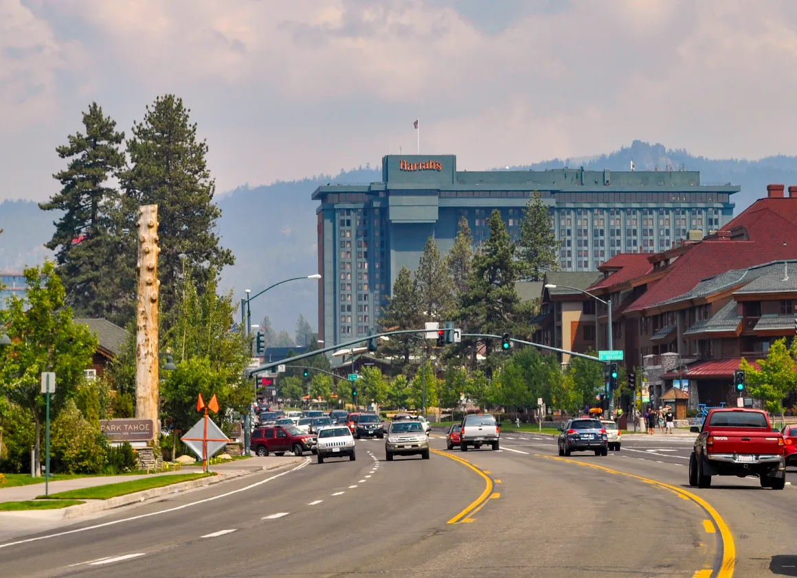 South Lake Tahoe wirkt gemütlich, überschaubar, fast heimelig. Holzhäuser, Kiefern, Bergluft. Und dann gibt es da noch diese besondere Eigenheit: Mitten durch den Ort verläuft die Grenze zu Nevada. Auf der einen Seite Alpengefühl, auf der anderen Seite… nun ja. Beton. Casinos. Große, wenig charmante Bunker, die sich ziemlich rücksichtslos in den Himmel schieben. Ein harter Stilbruch, aber typisch amerikanisch: Grenze überschreiten, Welt wechseln.
