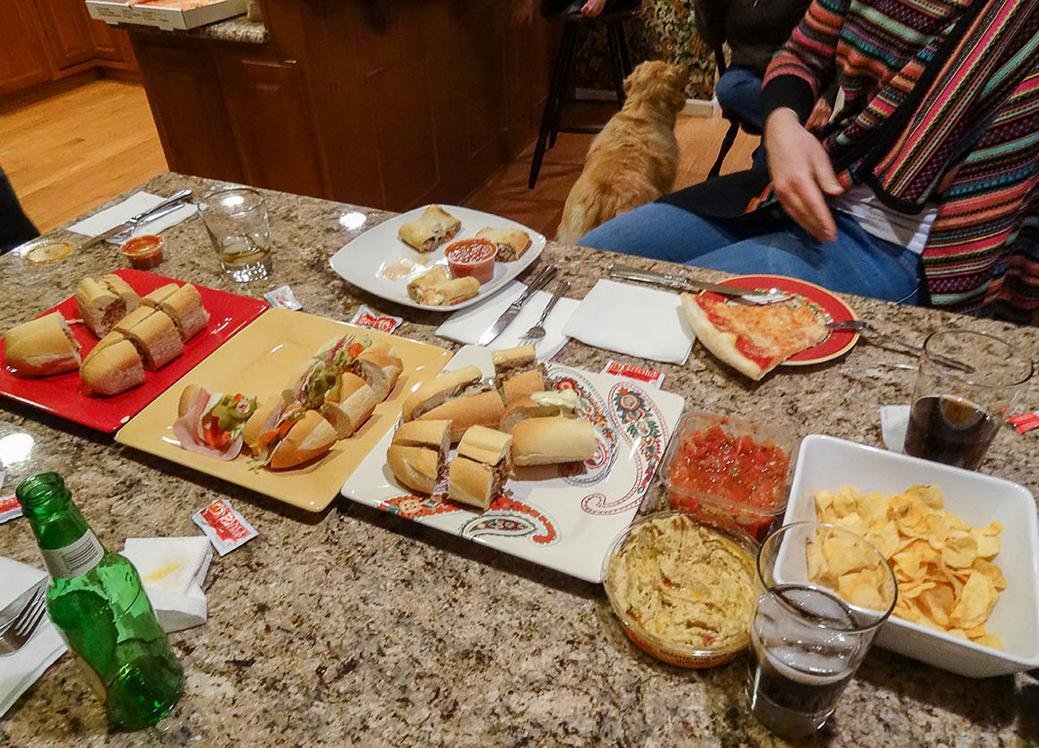Angekommen in Kens Zuhause versammelten wir uns in der einladenden Küchenbar, die zum Herzen des Hauses geworden war. Ken hatte für uns authentische Philly Cheesesteaks besorgt, die unsere Gaumen verwöhnten. Dazu gab es eine bunte Auswahl an Fingerfood-Leckereien und köstlichem lokalem Bier, das den perfekten kulinarischen Abschluss bildete. 🍻