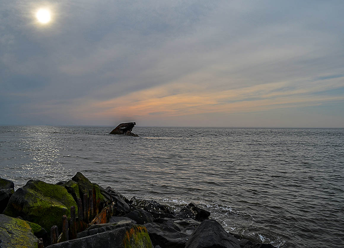 Ursprünglich wurde die SS Atlantus hierher geschleppt und verankert, nachdem sie repariert worden war. Doch das Schicksal hatte andere Pläne. Ein schwerer Sturm zog auf und zwang das Schiff, in die Tiefe zu sinken. Zahlreiche Versuche, die Atlantus zu bergen, blieben erfolglos. So liegt sie nun hier, als stilles Zeugnis vergangener Tage und dient gleichzeitig als beeindruckendes Fotomotiv für Besucher und Fotografen, die die Faszination der Geschichte und die Schönheit des Sonnenuntergangs festhalten möchten.