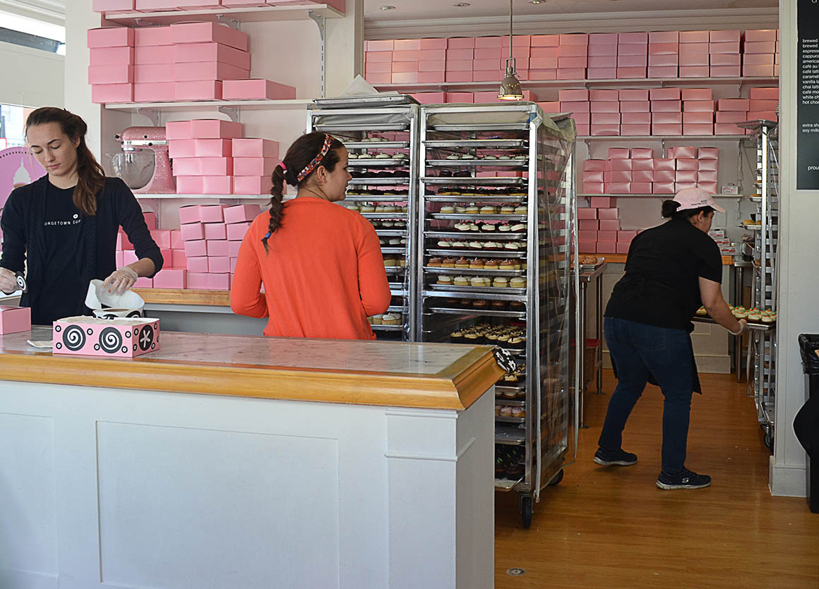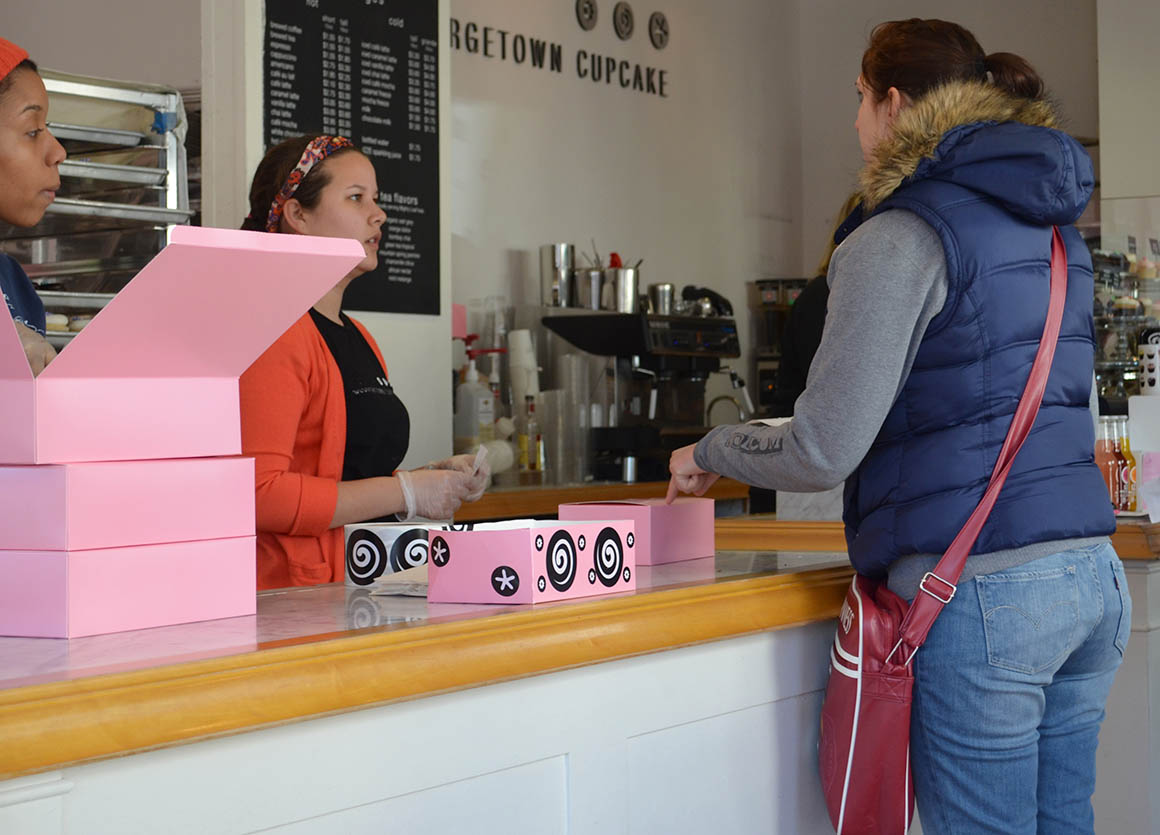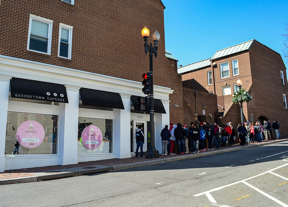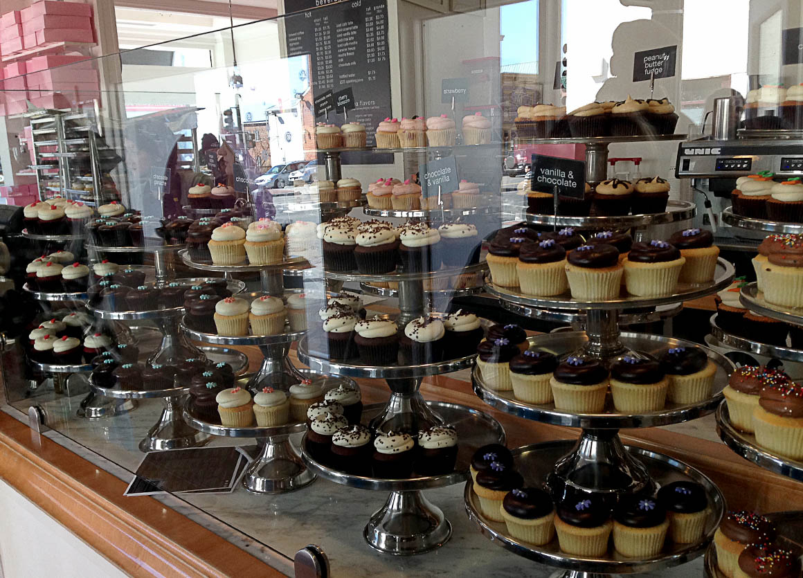 Und es gibt in Georgetown die besten Cupcakes (der Welt?)! sagt man. Die Schlange zu den Minikuchen war lang – aber davon haben wir schon gehört. Wir stellen uns also am Ende der Warteschalnge an und bekommen von einer Mitarbeiterin des Cupcake Geschäfts vorab eine Art Speisekarte auf der steht, welche Cupcakes heute im Angebot sind. Gut – so haben wir schon mal was zu tun…