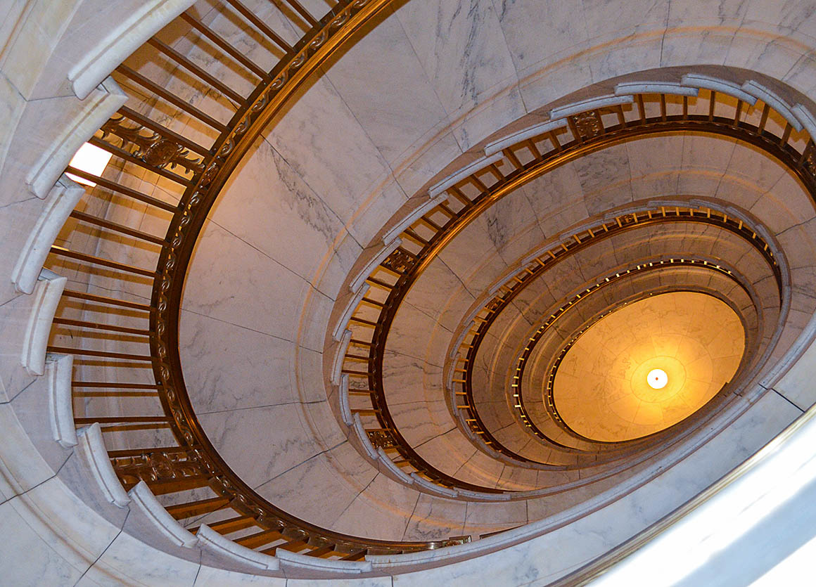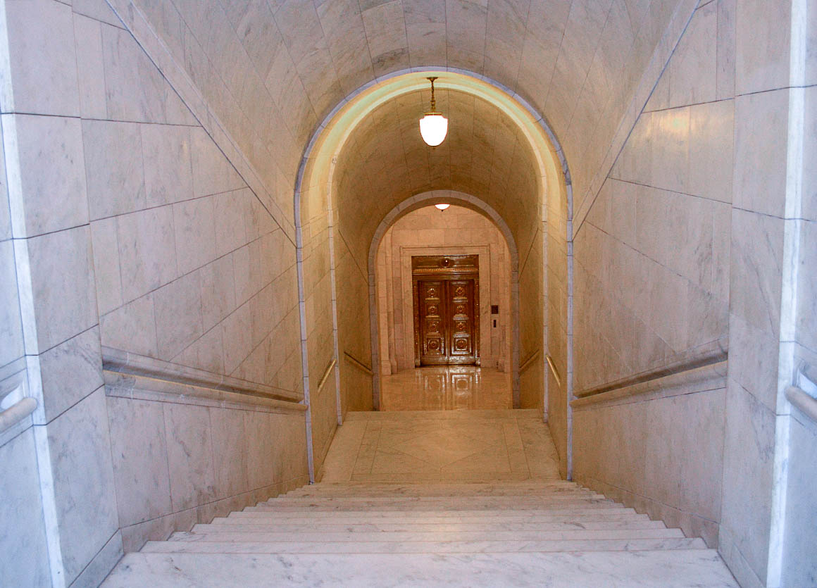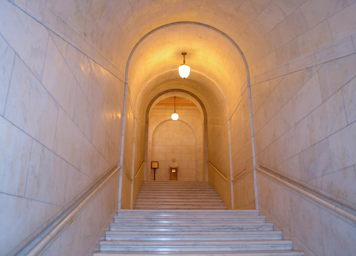 Wir haben Glück – es tagt kein Gericht – dann wäre das Gebäude nämlich nicht öffentlich zugängig. So können wir uns im Gebäude frei bewegen und fotografieren.