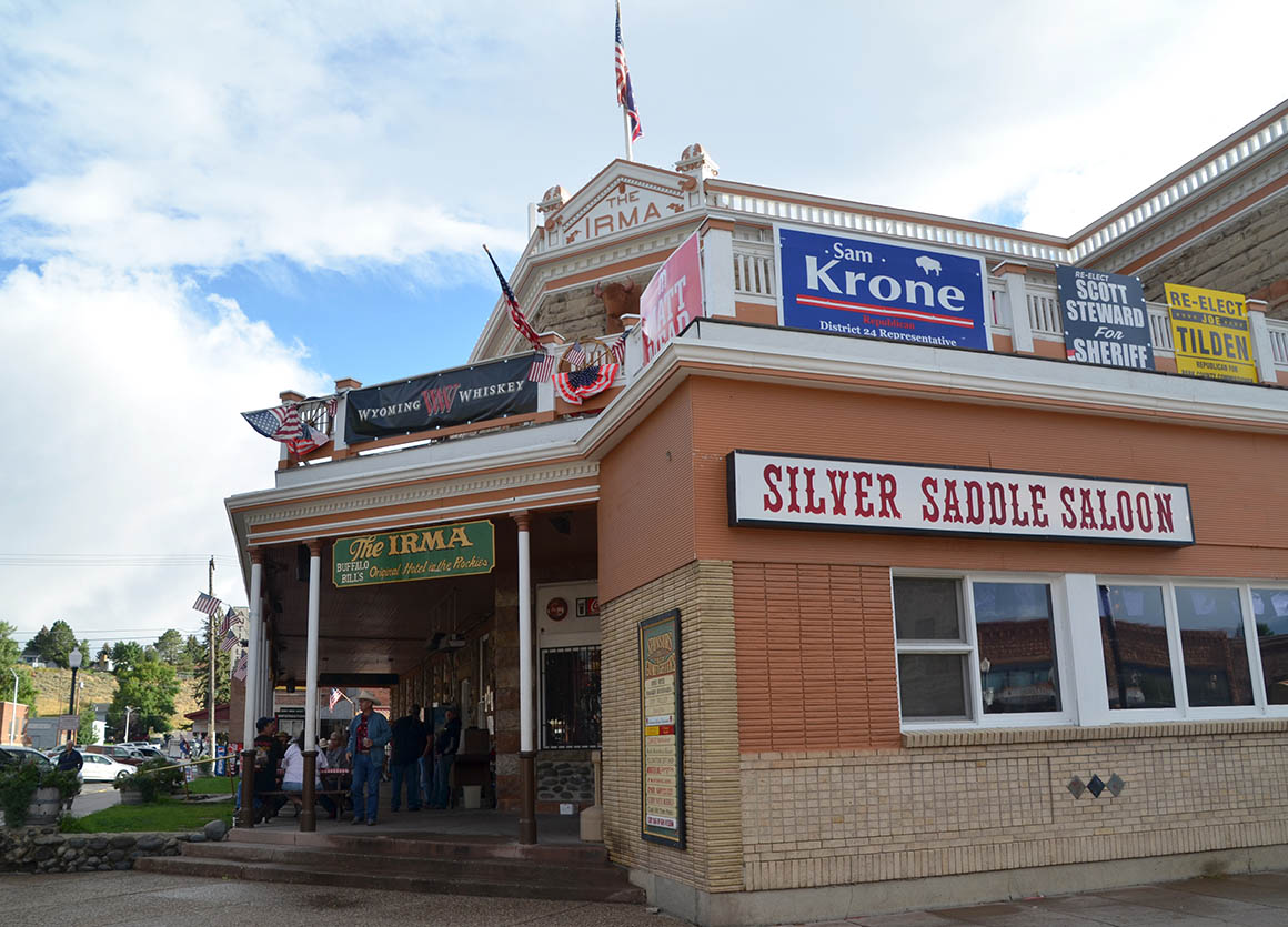Unser Spaziergang führt uns direkt am historischen Irma Hotel vorbei, das 1902 von William F. Cody selbst erbaut wurde und nach seiner Tochter Irma benannt ist. Das Hotel versprüht noch immer diesen unverwechselbaren Wild-West-Charme, und es fällt nicht schwer, sich vorzustellen, wie damals Cowboys, Reisende und Abenteurer hier ihren Abend verbrachten. Der Saloon im Inneren des Hotels, mit seinem reich verzierten Barbereich und den Holzvertäfelungen, wirkt wie eine Zeitkapsel aus vergangenen Tagen.