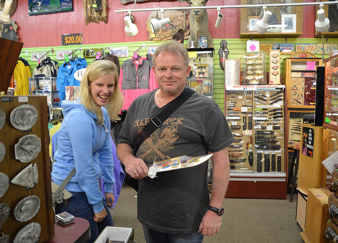 Nachdem wir uns von der fesselnden Atmosphäre der Downtown haben mitreißen lassen, können wir natürlich nicht widerstehen, einige der charmanten Läden zu besuchen. Die Shops in Cody bieten wirklich alles, was das Herz begehrt – von authentischen Western-Souvenirs wie Cowboyhüten und Ledergürteln bis hin zu handgefertigten Kunstwerken lokaler Künstler. Selbst echte Rodeo-Mitbringsel wie Miniatur-Lassos oder Gürtelschnallen im Western-Stil finden hier ihren Platz. Jeder Laden hat seinen eigenen Charakter, und es fühlt sich an, als würde man in jedem Geschäft ein kleines Stück Geschichte mitnehmen. Natürlich lassen wir es uns nicht nehmen, ein paar Erinnerungsstücke für zu Hause einzupacken.