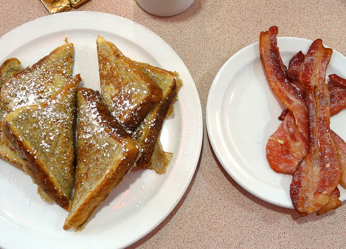 Der French Toast – ein echter Klassiker – übertrifft alle Erwartungen. Außen leicht knusprig, innen fluffig, mit einem Hauch Zimt und warmem Ahornsirup – eine absolute Wucht. Und das Beste: Es wird nicht nur der Magen, sondern auch das Herz satt. Stefan und ich gönnen uns außerdem klassische Omelettes mit allem Drum und Dran, während Bianca die Pancakes testet – auch sie sind ein Volltreffer.