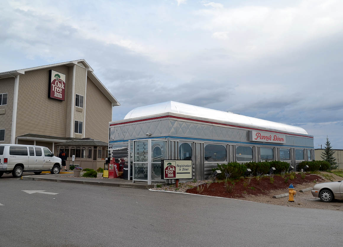 Guten Morgen aus Rawlins! Heute beginnen wir unseren Tag mit einem richtig guten Frühstück im charmanten Penny’s Diner, das praktischerweise direkt neben unserem Hotel liegt. Dieses Diner hat wirklich etwas ganz Besonderes – es strahlt diesen nostalgischen 50er-Jahre-Charme aus, komplett mit glänzenden Chrom-Details und einer offenen Küche, die uns einen Blick auf die leckeren Gerichte in der Zubereitung bietet. Es ist fast so, als würde man in der Zeit zurückreisen, nur dass uns die moderne Technik frischen Kaffee direkt an den Tisch bringt!