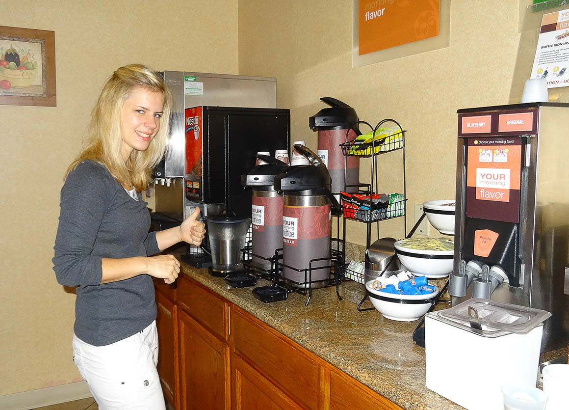 Nach einem kurzen Rückzug ins Bett schafften wir es schließlich um wirklich 6 Uhr zum Frühstück. Das Buffet war ein Genuss, und während wir uns stärkten, konnten wir uns immer noch über meinen kleinen Zeitzonen-Fauxpas amüsieren. Gut gelaunt und voller Energie machten wir uns anschließend auf den Weg zum Mount Evans – bereit, das nächste große Abenteuer in den Rocky Mountains zu erleben!