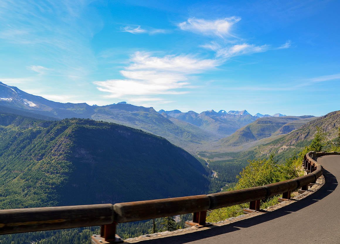 Die Straße wurde zwischen 1921 und 1932 erbaut und gilt als ein Meisterwerk der Ingenieurskunst. Sie durchquert die Rocky Mountains und windet sich durch dramatische Landschaften, während sie steile Klippen, tiefe Schluchten und unberührte Bergwiesen passiert. Die Going-to-the-Sun Road ist die einzige Straße, die den Park von Ost nach West vollständig durchquert und erreicht ihren höchsten Punkt am Logan Pass auf rund 2.025 Metern über dem Meeresspiegel. Von hier aus bietet sich ein beeindruckender Blick auf die umliegenden Gipfel und das darunterliegende Tal.