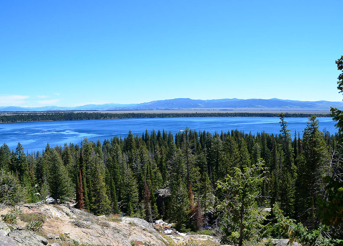Oben angekommen, auf dem majestätischen Inspiration Point, stolze 7.200 Fuß über dem Meeresspiegel – das sind etwa 2.160 Meter – werden wir mit einem atemberaubenden Panorama belohnt, das jede Herausforderung des Weges sofort vergessen lässt. Der weite Blick über den glitzernden Jenny Lake, die umliegenden Wälder und die imposanten Gipfel der Tetons, die sich gegen den klaren Himmel abzeichnen, ist schlichtweg überwältigend.