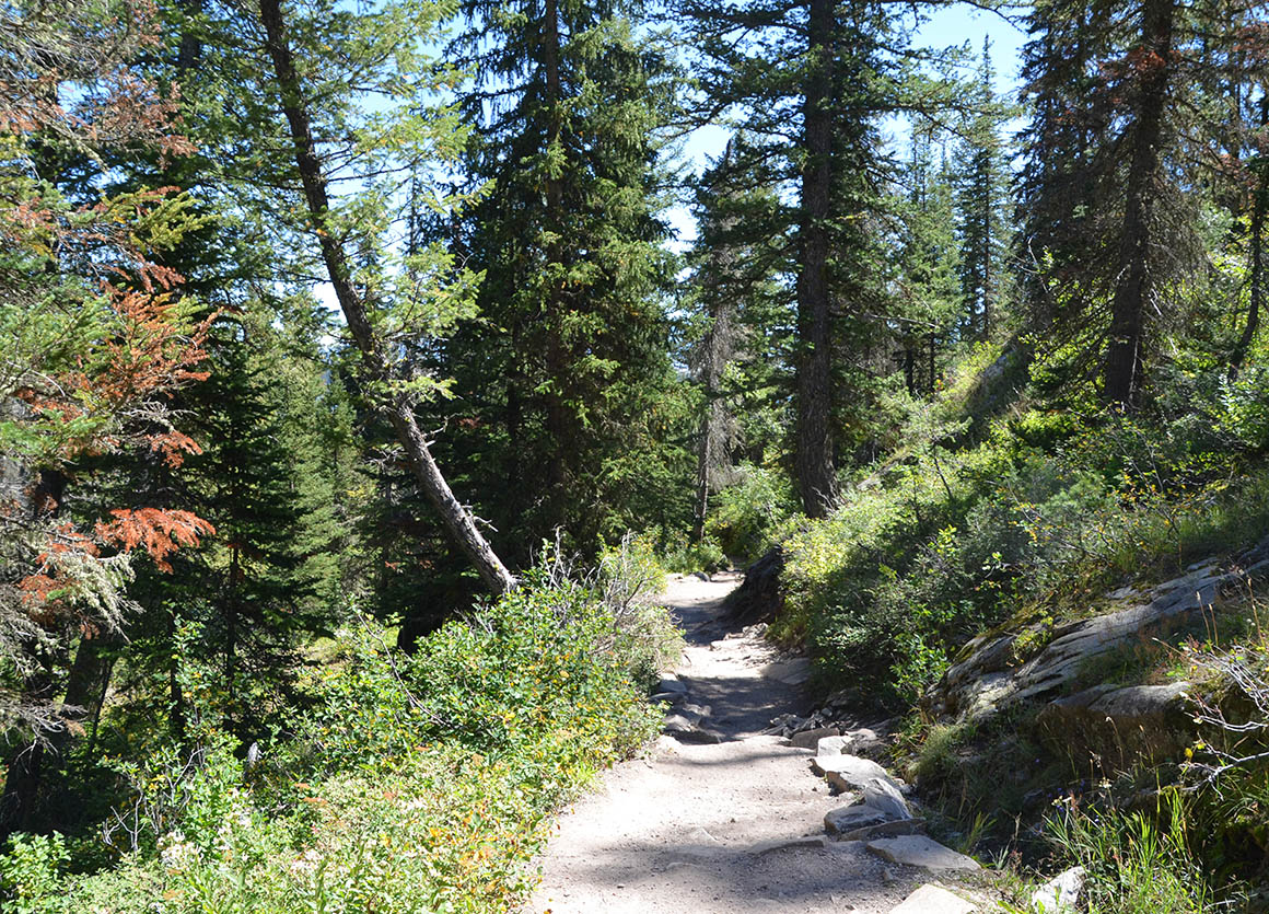 Nach einer wohlverdienten Pause an den beeindruckenden Hidden Falls, wo wir die frische Bergluft und die rauschenden Wassermassen in vollen Zügen genossen haben, machen wir uns mit neuem Elan auf den Weg zum Inspiration Point. Der Trail verändert nun sein Gesicht – er wird steiler und anspruchsvoller. Die Pfade verengen sich und führen uns durch dramatische, schmale Passagen, die immer wieder atemberaubende Tiefblicke auf den Jenny Lake und das darunterliegende Tal freigeben.