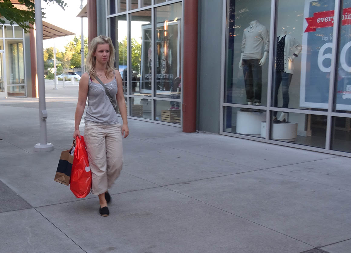 Während Bianca mit Begeisterung in den Läden stöbert, gönnen wir uns hin und wieder eine kurze Pause, um das Treiben um uns herum zu beobachten. Nach zwei erfolgreichen Stunden und einigen gut gefüllten Tüten machen wir uns schließlich wieder auf den Weg. Unsere neu erworbenen Schätze sind sicher verstaut, und mit einem Lächeln setzen wir unsere Reise Richtung Seattle fort. Es ist schon spät am Nachmittag, und der Tag hat uns viele schöne Momente beschert – von beeindruckender Natur bis hin zu einem Shopping-Erlebnis voller Stil und Freude.