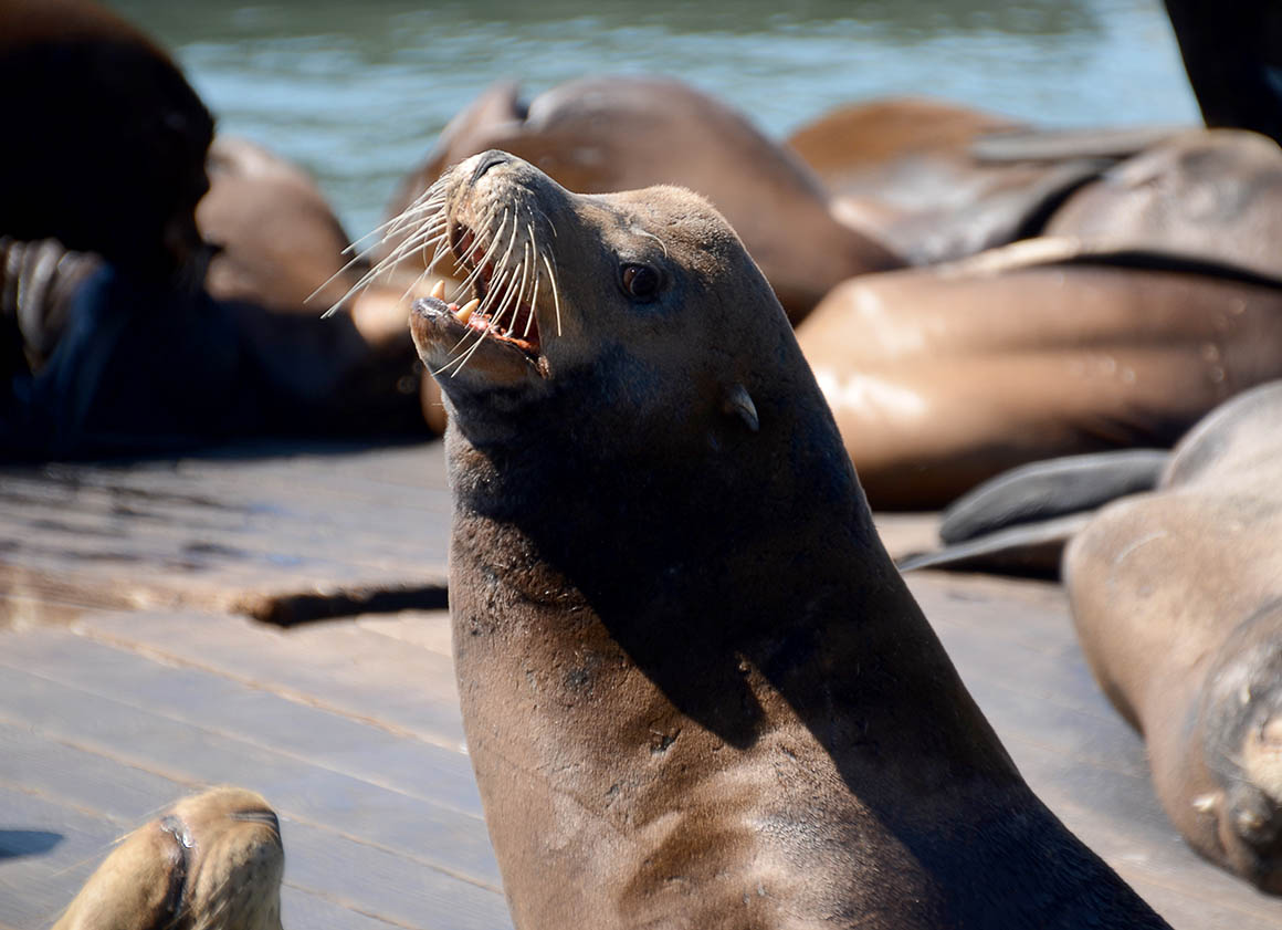 Unser erster Halt: Fishermans Warf und das legendäre Pier 39! Wir besuchen die berühmten Seelöwen, die dort ihre einzige Aufgabe haben: in der Sonne zu faulenzen und sich mit ihren Artgenossen um den besten Platz zu streiten. Es wird geschubst, gebissen und vor allem laut gebrüllt – ein Spektakel, das uns zum Lachen bringt und den perfekten Start für unsere Erkundungstour bildet!