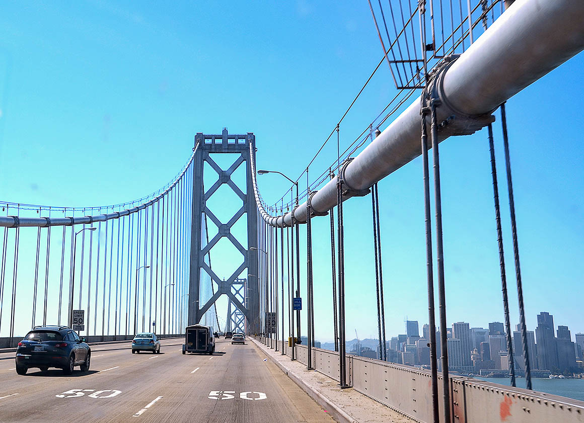 Von Oakland her kommend erlebten wir eine unvergessliche Fahrt über die majestätische Oakland Brigade. Die Brücke bot uns spektakuläre Ausblicke auf die glitzernde Bucht und die ikonische Skyline von San Francisco.