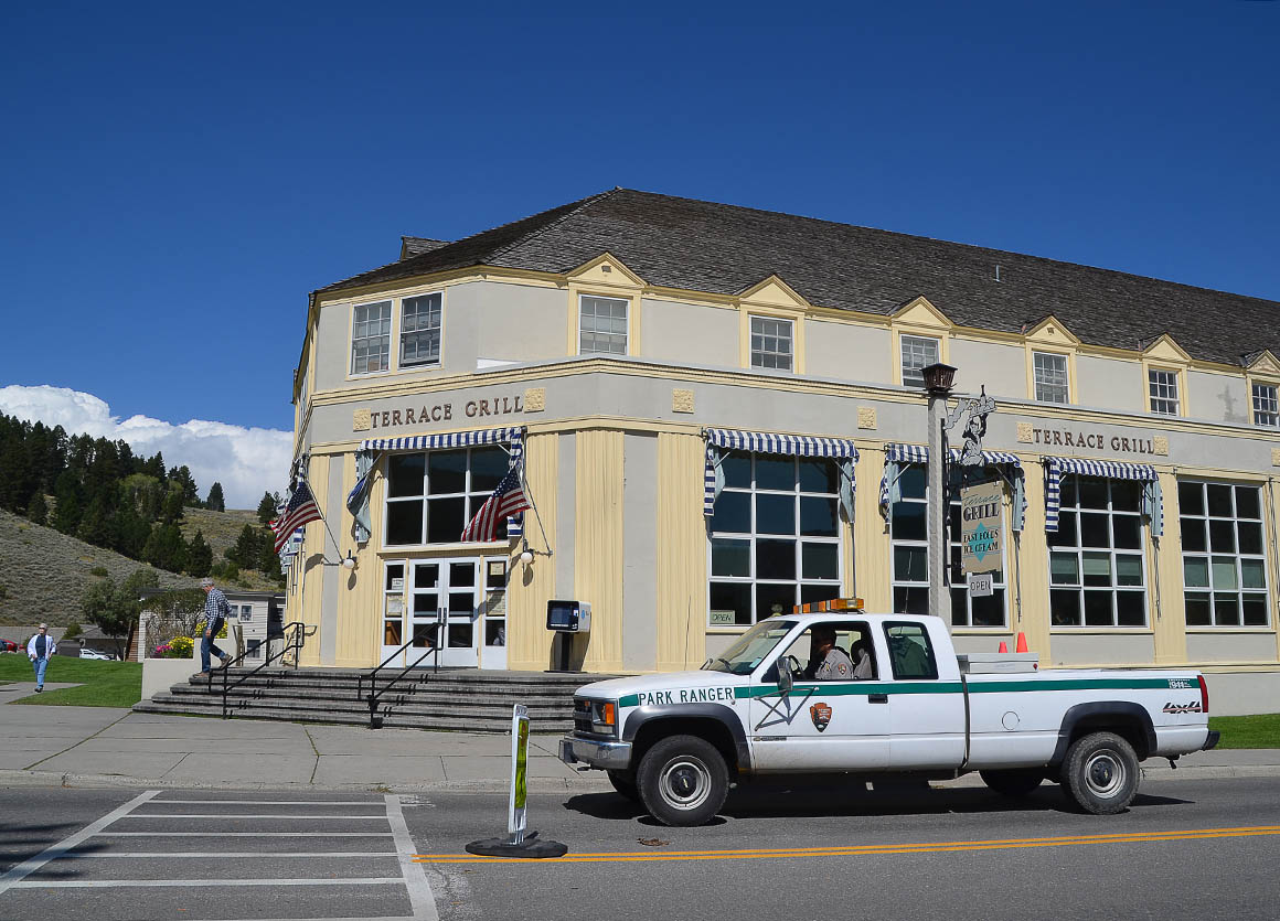 Nach einer weiteren aufregenden 90-minütigen Fahrt erreichen wir schließlich Mammoth, das malerische Verwaltungszentrum in der nordwestlichen Ecke des Yellowstone Nationalparks. Die Landschaft verändert sich hier wieder auf eine faszinierende Weise, und wir sind gespannt auf das, was uns noch erwartet. Doch bevor wir uns den berühmten Sinterterrassen widmen, verspüren wir ein leichtes Hungergefühl und beschließen, uns in Mammoth eine kleine Stärkung zu gönnen.