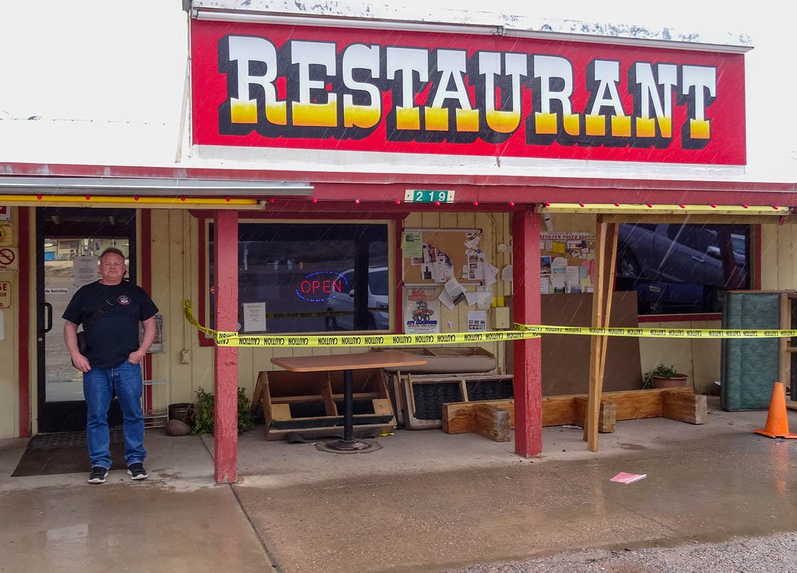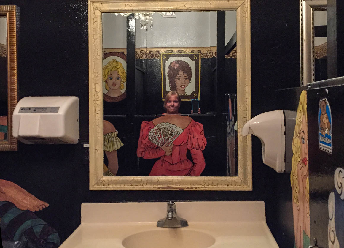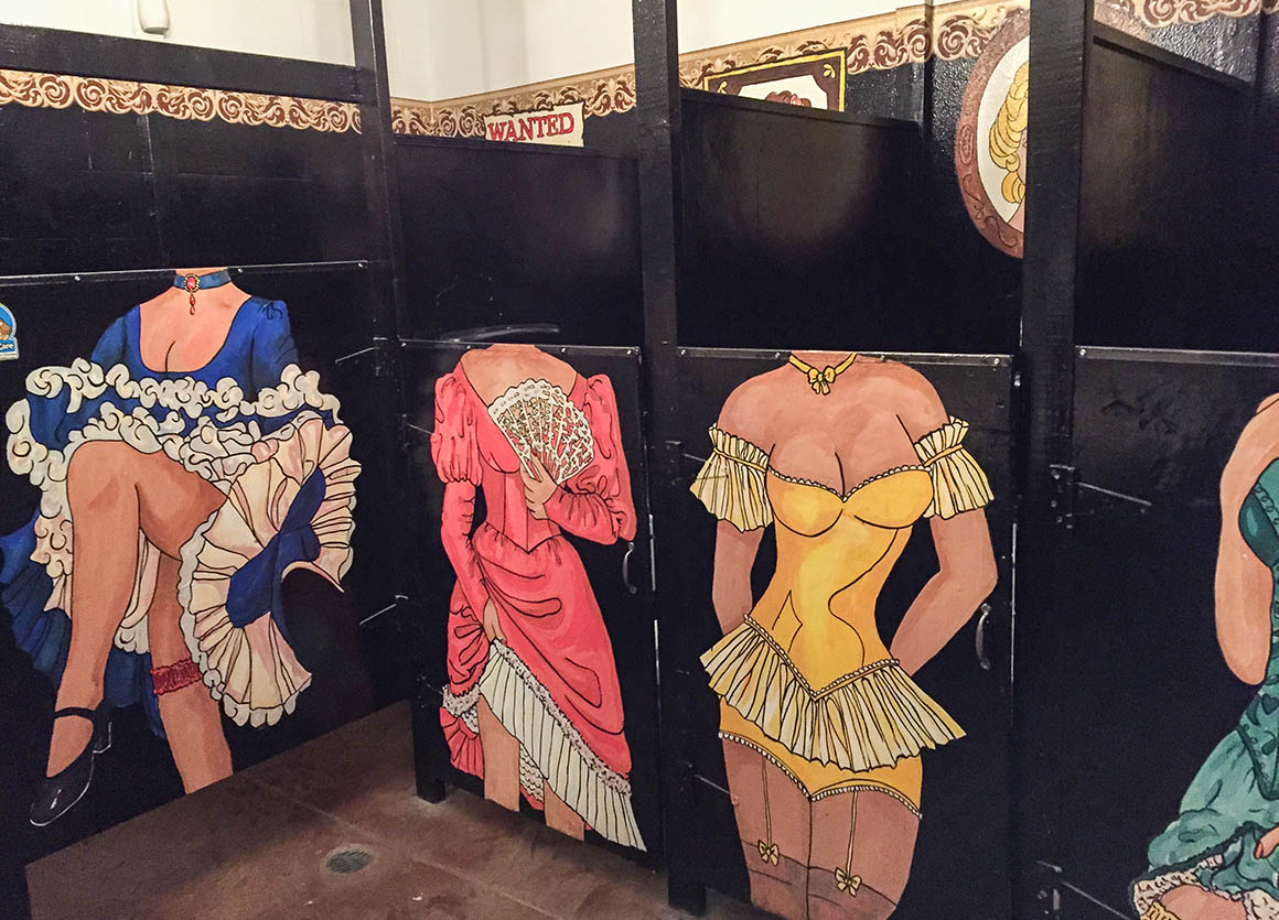 Wir bestellen uns jeder eine Cola und ich gönne mir dazu noch eine Zimtschnecke. So gestärkt wollen wir uns nun auf unseren weiteren Weg machen. Davor besuche ich noch die etwas ungewöhnlichen Restrooms des Saloons.
