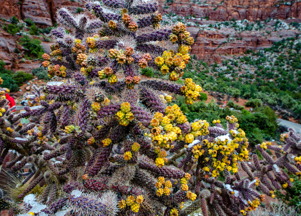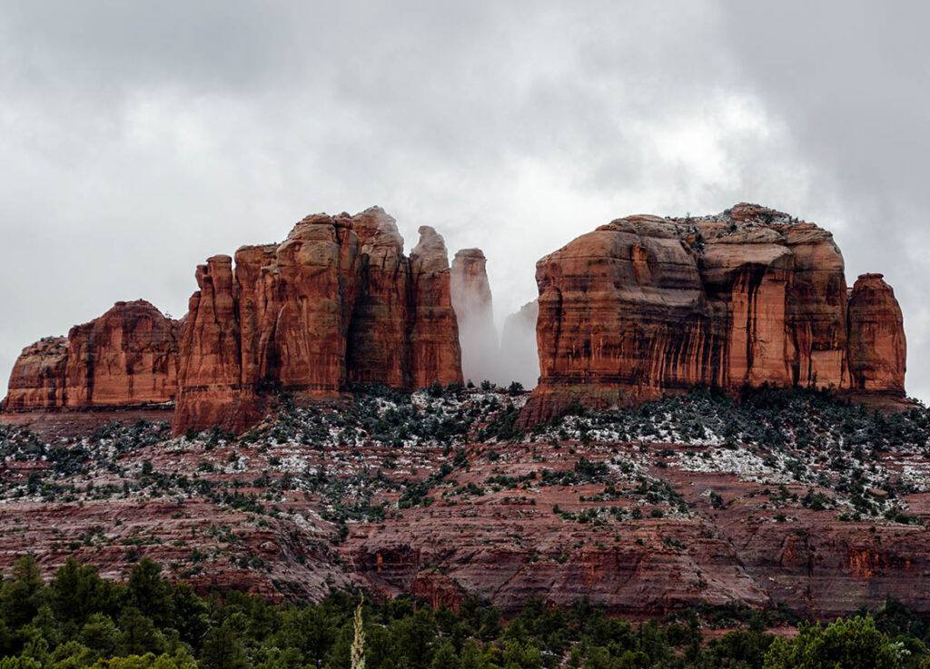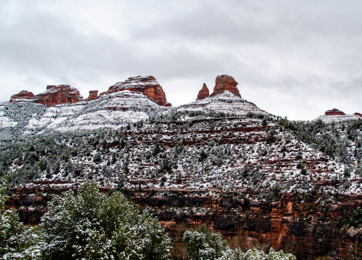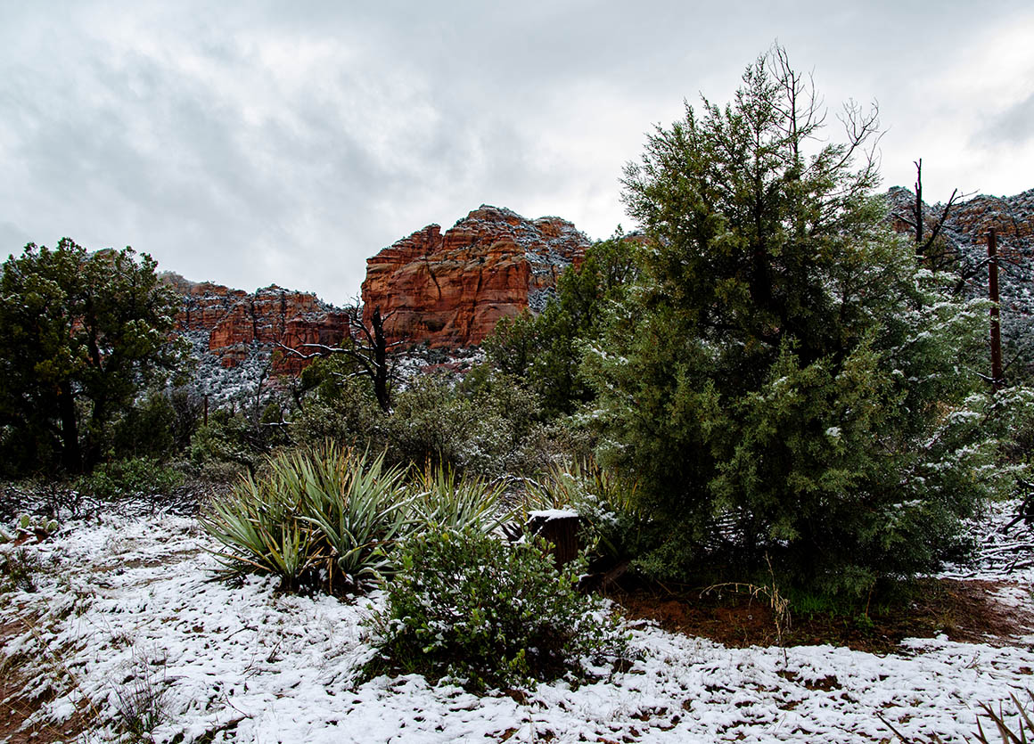 In Payson biegen wir auf den Hwy 260 in westliche Richtung ab. Wir wollen über Sedona nach Flagstaff. Dann fing es an zu schneien; so richtig. Wir fuhren durch einen wunderschön verschneiten Wald. Und erst als wir kurz vor Camp Verde waren, war die Umgebung wieder schneefrei. Hier schnell bei Starbucks eine kleine Kaffeepause – dann geht’s auch schon weiter.