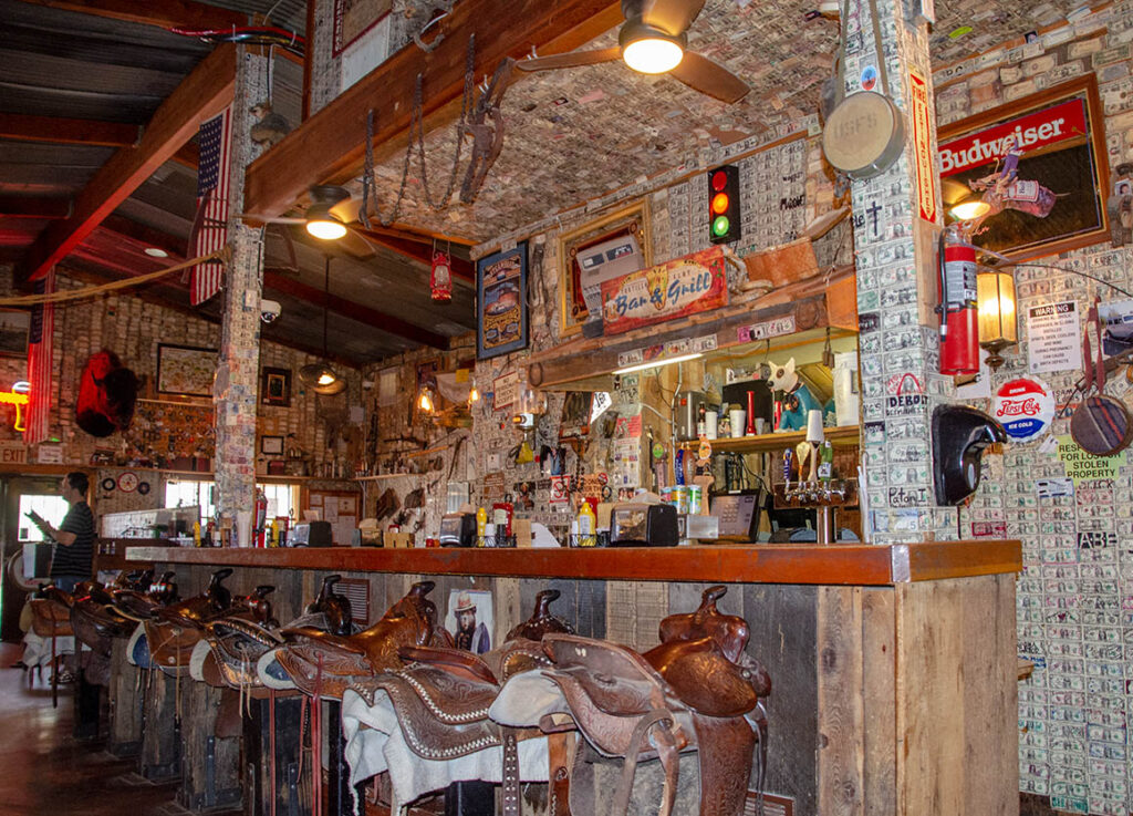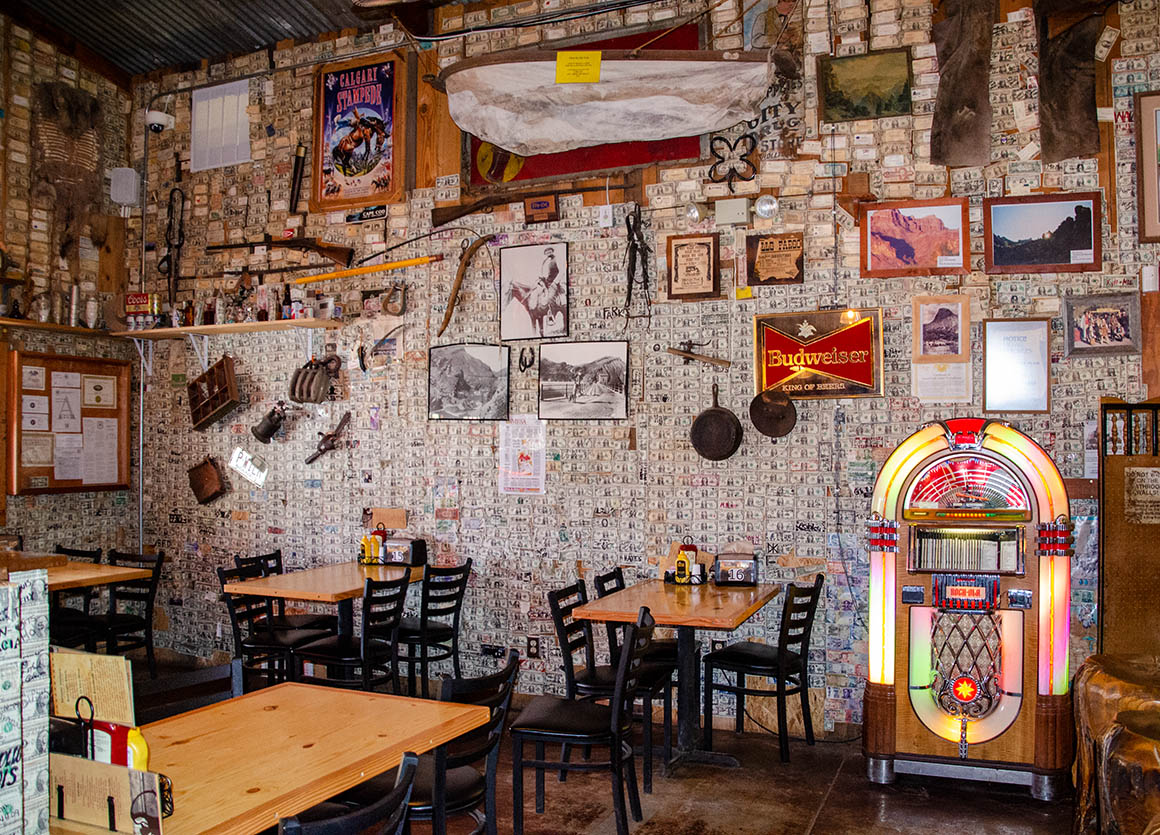 Wir parken unseren Wagen vor dem Superstition Salon und treten ein. Die Die Wände der kuriosen Kneipe sind mit unzähligen Dollarnoten beklebt. Insgesamt sollen es mehr als 300.000 sein. Mal was anderes als nur eine schnöde Tapete.