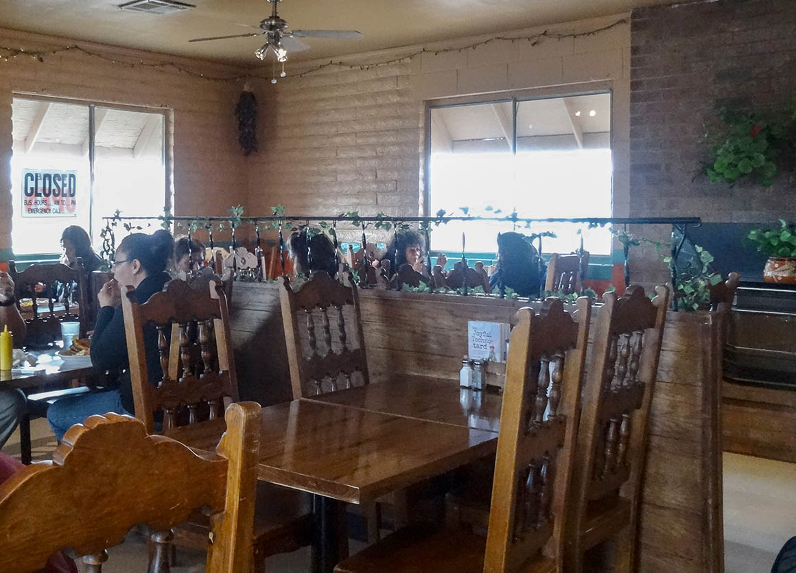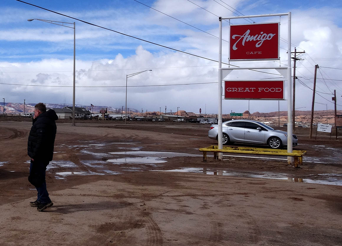 Bevor wir dort ankommen, machen wir in Kayenta einen kleinen Lunch Stopp im „World-Famous-Amigo Cafe“. Es ist ein sehr kleines Restaurant, welches vorwiegend von „Native Americans“ besucht wird. Bis auf einen kleinen Tisch – er wird unserer – ist es komplett voll.