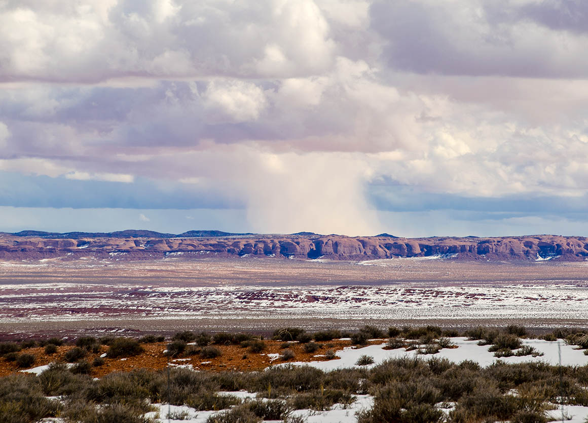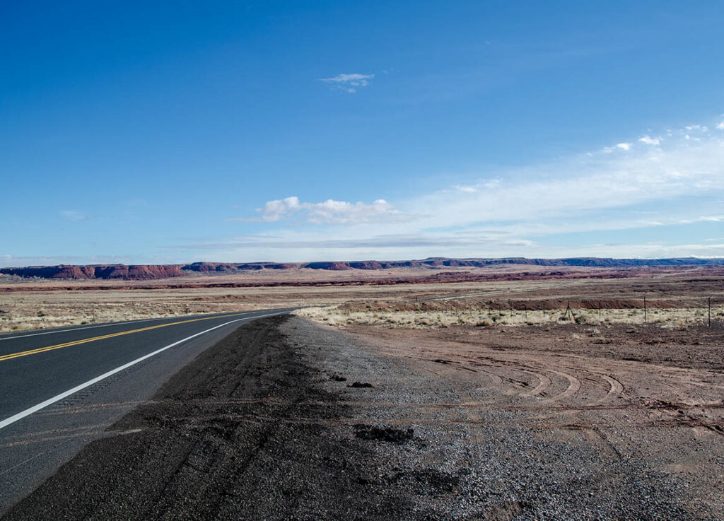 Also von dieser Seite her zum Blue Canyon zu fahren konnten wir vergessen. Es gibt aber noch eine nördliche Zufahrt – die wollen wir noch ausprobieren. Zunächst müssen wir dazu zurück nach Tuba City. Auf der 160 fahren wir ca. 35 km nach Norden. Als wir an der entsprechenden Abzweigung ankommen müssen wir enttäuscht feststellen, dass die Straße für unseren Wagen unfahrbar ist. Riesige Wasserpfützen am Anfang des Weges hindern uns an unser Ziel zu kommen. Schade!