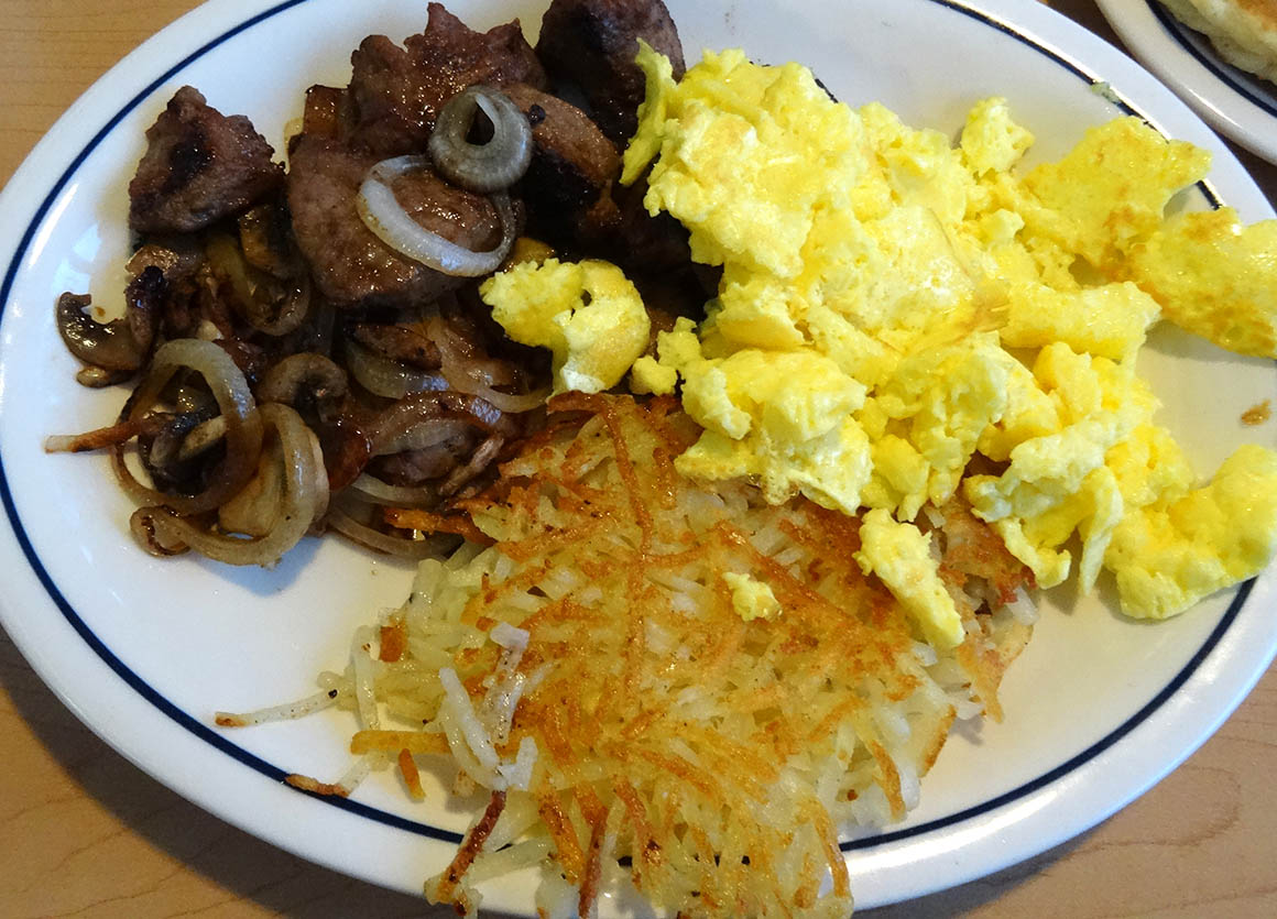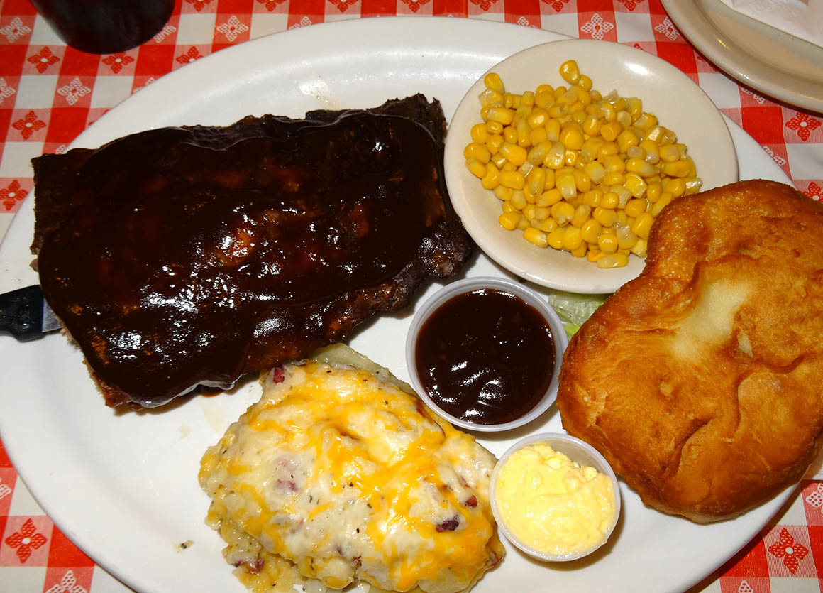 Wir sind hungrig und fahren zu „Susis Branding Iron“ am südlichen Ende der Stadt. Dienstags gibt es hier ein Spareribs-Special. Hmmm … lecker. Stefan isst einen riesigen und ebenfalls leckeren Ceasars Salad.