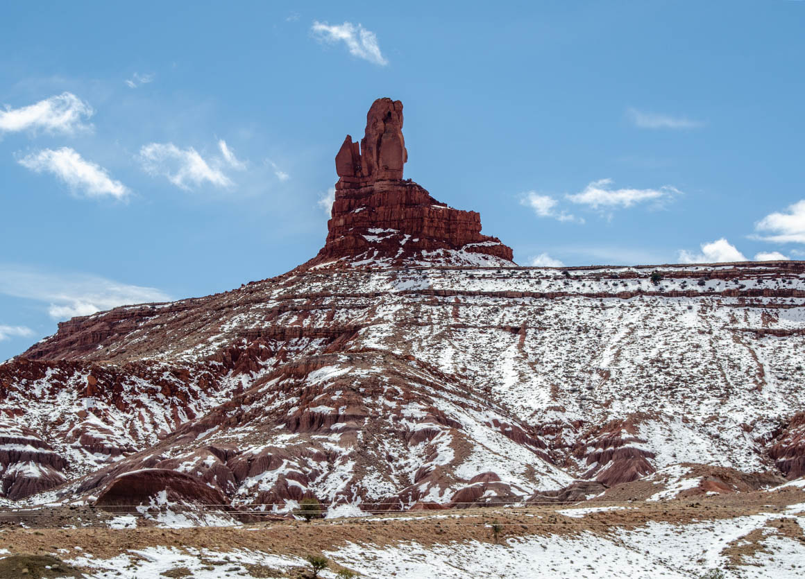 Nur haben wir heute offensichtlich kein Glück mit dem Straßenbelag. Heute ist auch die Straße des Valleys nicht befahrbar und so wird hier auch kein Eintritt verlangt. Wohl aber können wir in den Park fahren und vom Visitor Center aus die spektakuläre Aussicht genießen. Die roten Felsen haben kleine Schneehäubchen und sehen so besonders toll aus.