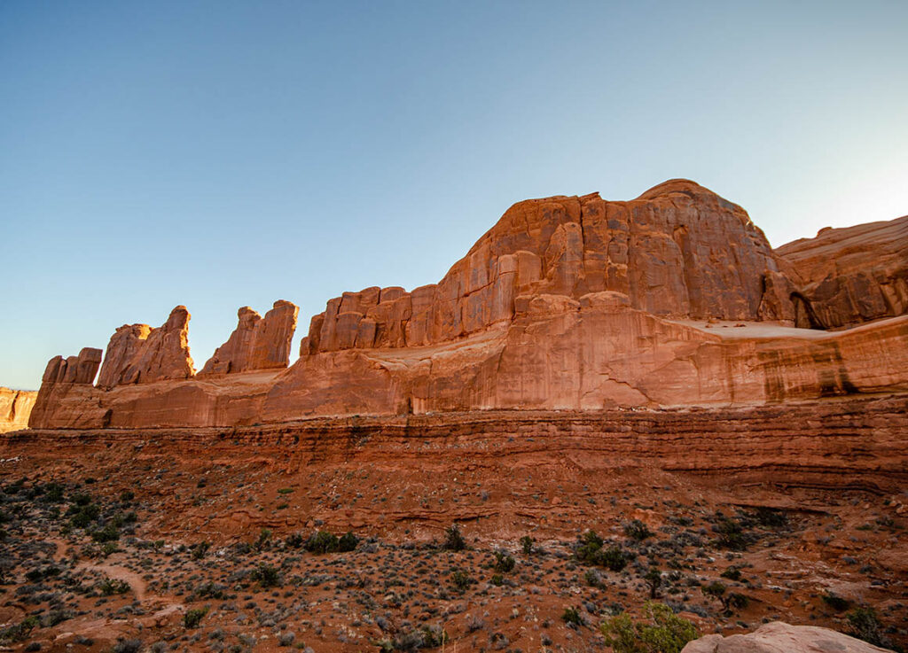 Unser erster Stopp ist bei der „Park Avenue“, einer Felsformation die an eine Skyline erinnert. Den Trail hier sparen wir uns, da die Felsen jetzt am Morgen im Schatten liegen und deshalb nicht ganz so schick aussehen.