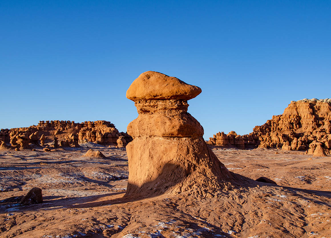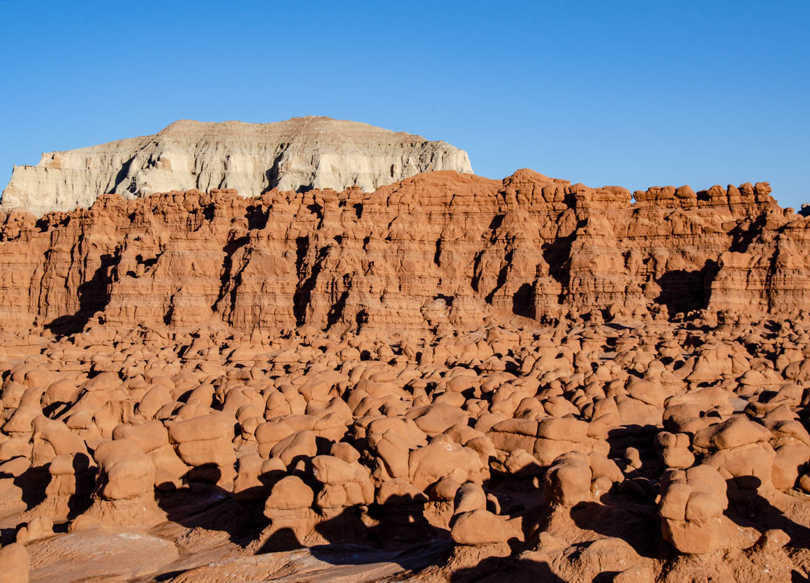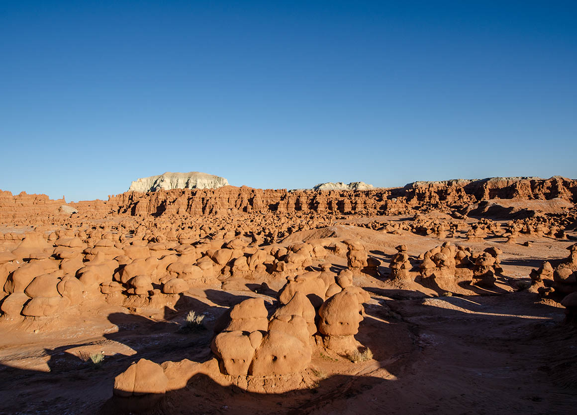 Wir kehren um und sehen den Canyon nun aus einer anderen Sicht. Wieder zurück am Trailhead fahren wir die kurze Strecke zum Goblin Valley. Dort wollen wir die Zeit bis zum Sonnenuntergang verbringen.