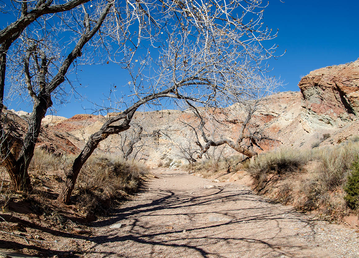 Nachdem man dem ausgetrockneten Fluss ungefähr für eine viertel Meile gefolgt ist, versperrt ein riesiger Felsen das Weiterkommen. Aber es gibt eine einfache Möglichkeit, dieses Hindernis zu umgehen, indem man einfach links die Felswand nach oben läuft und nach dem Hindernis wieder hinunter.