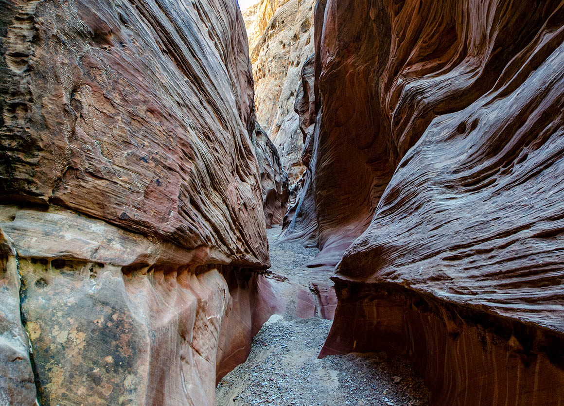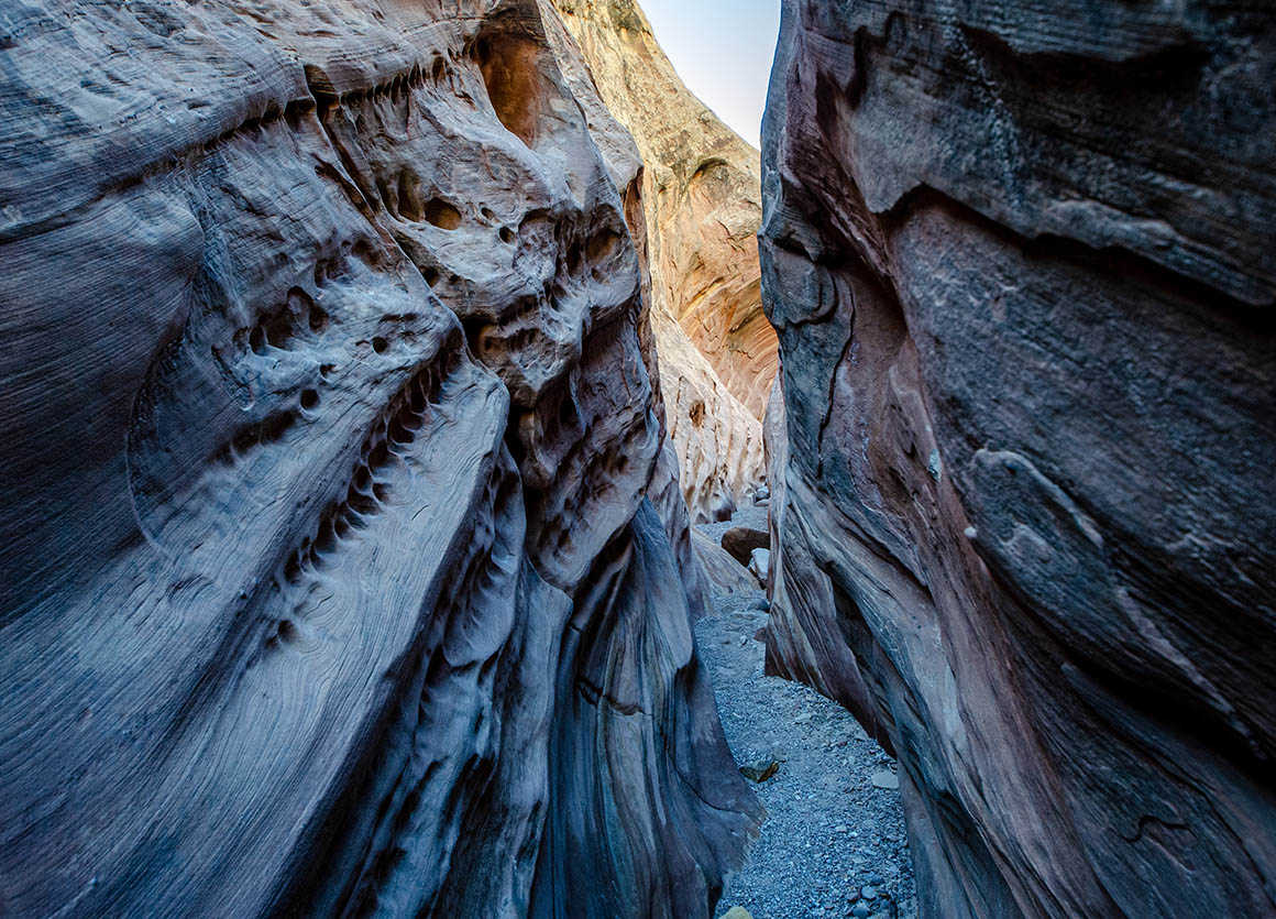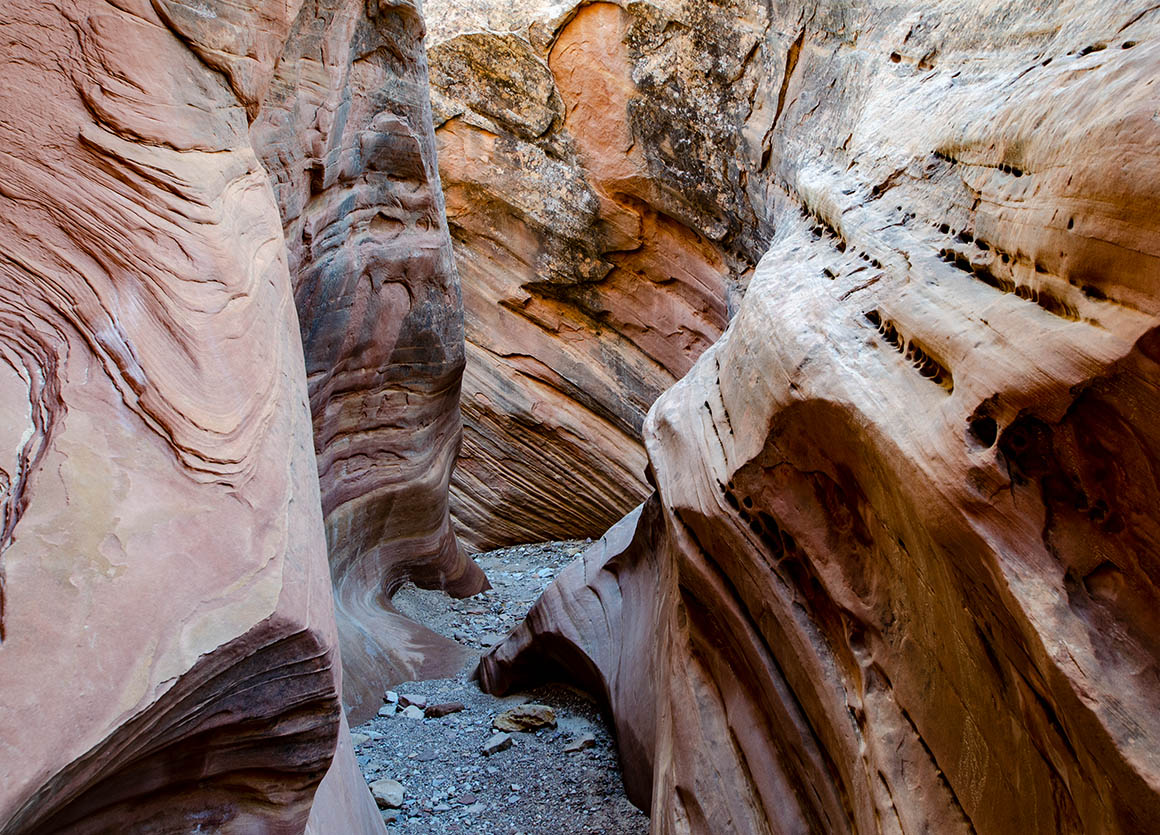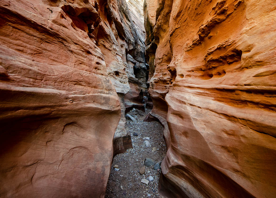 Kurz nach der „gelöcherten Wand“ verengt sich der Canyon. Die komplette Wanderung ist ein 9,4 Meilen langer Roundtrip und führt neben dem Little Wild Horse Canyon auch noch durch den Bell Canyon. Wer sich für diese Tageswanderung entschließt, benötigt ungefähr 5-6 Stunden. So viel Zeit haben wir nicht. Wir haben uns ein Limit von insgesamt 4 Stunden gesetzt – also laufen wir 2 Stunden lang in den Canyon hinein und gingen dann den Weg wieder zurück.  Den kompletten Roundtrip haben wir uns für den nächsten Besuch hier vorgenommen.