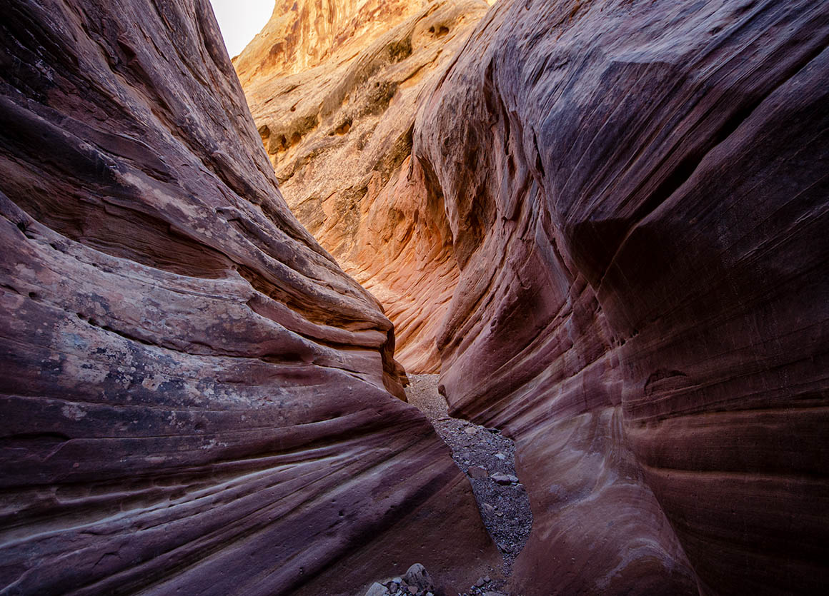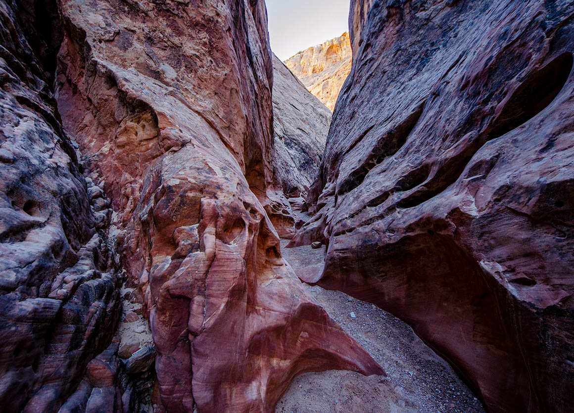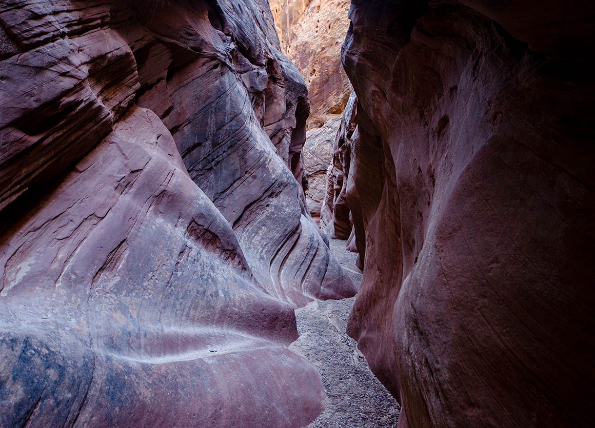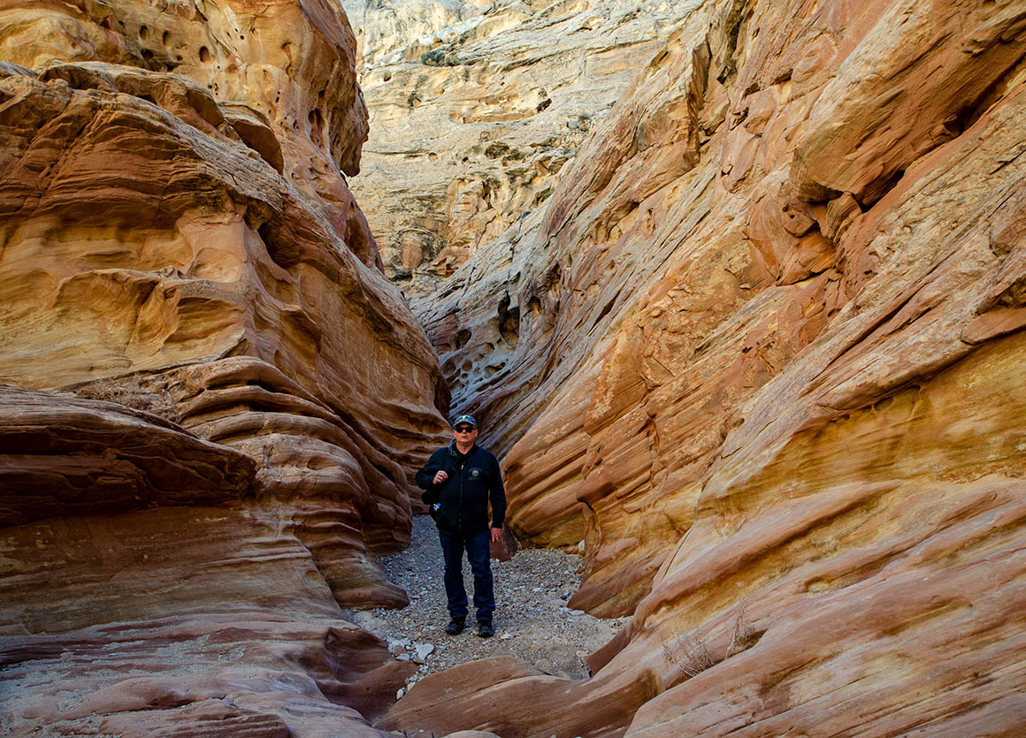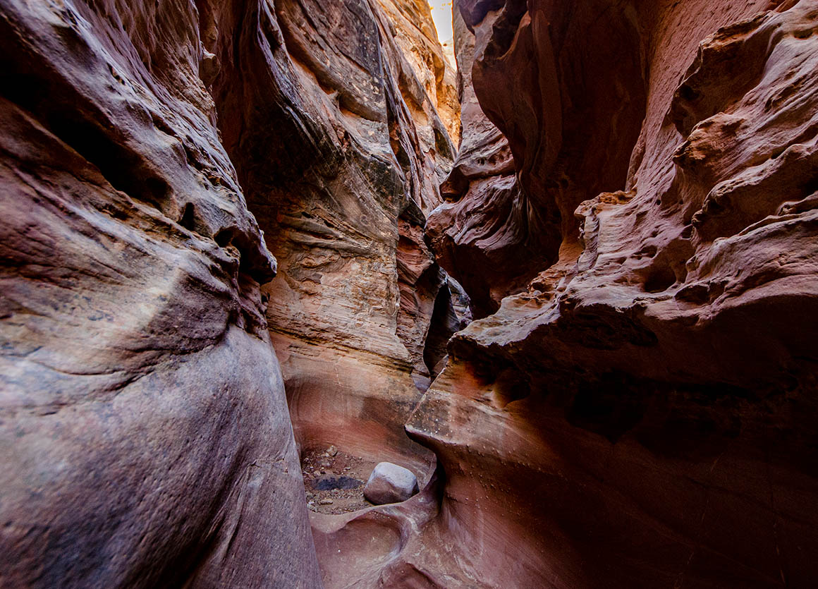 Kurz nach der „gelöcherten Wand“ verengt sich der Canyon. Die komplette Wanderung ist ein 9,4 Meilen langer Roundtrip und führt neben dem Little Wild Horse Canyon auch noch durch den Bell Canyon. Wer sich für diese Tageswanderung entschließt, benötigt ungefähr 5-6 Stunden. So viel Zeit haben wir nicht. Wir haben uns ein Limit von insgesamt 4 Stunden gesetzt – also laufen wir 2 Stunden lang in den Canyon hinein und gingen dann den Weg wieder zurück.  Den kompletten Roundtrip haben wir uns für den nächsten Besuch hier vorgenommen.