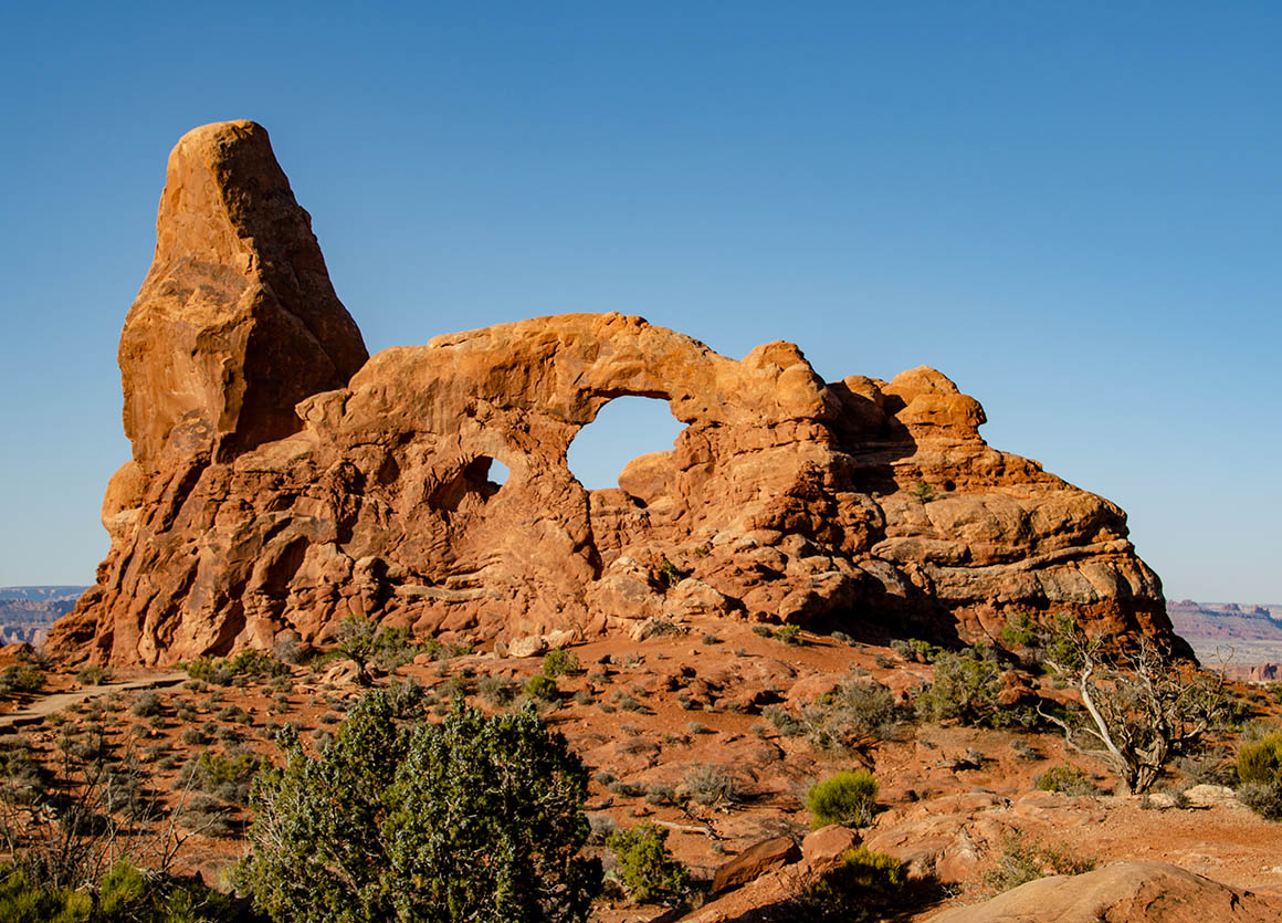 Ich möchte noch das berühmte Foto schießen, auf dem man den Turret Arch durch das North Windows sieht, schaffe es aber nicht noch genug auf den Felsen zu kommen von dem aus das Foto geschossen werden muss. Ärgerlich … vielleicht war ich auch einfach an der falschen Stelle .. ich werde das vor dem nächsten Besuch bei den Arches nochmal gründlicher recherchieren.