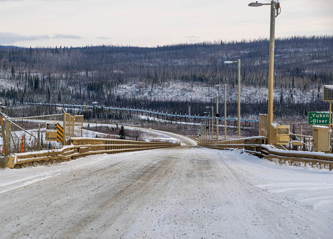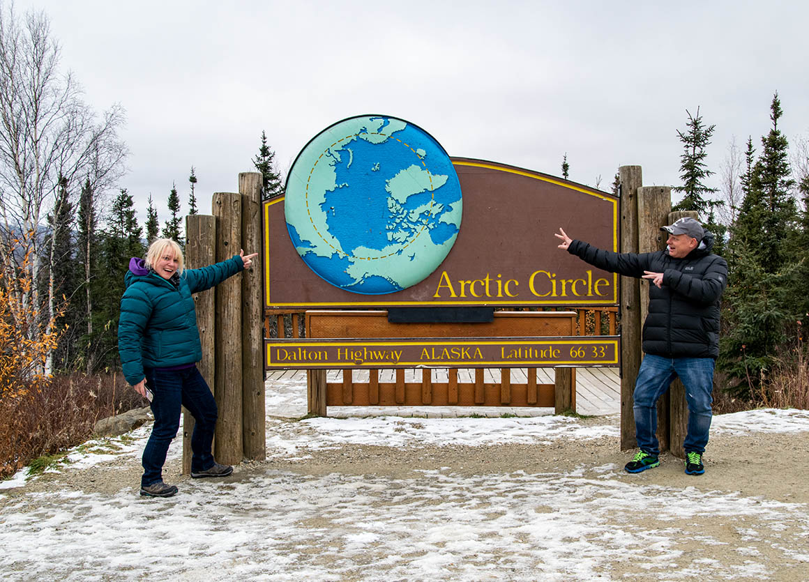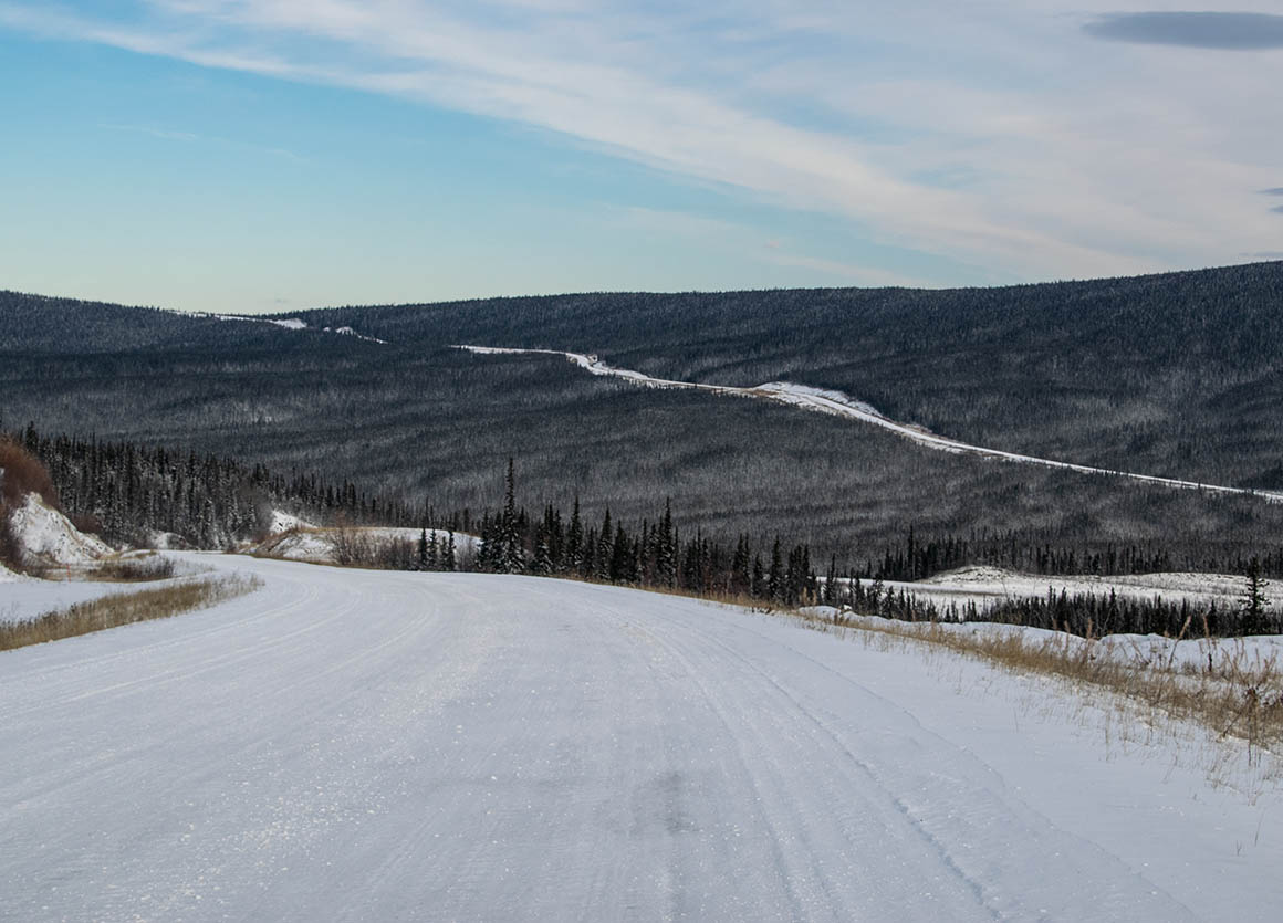 Der Steese- und Elliot Highway waren nach wie vor von einer Schneedecke bedeckt, aber der Schnee schien gut festgefahren zu sein, und überraschenderweise kamen wir erstaunlich gut voran. Wir passierten den Hilltop Truckstopp und das Pipeline Visitor Center, wo wir gestern noch Halt gemacht hatten. Heute waren wir jedoch fest entschlossen, den Arctic Circle zu erreichen.