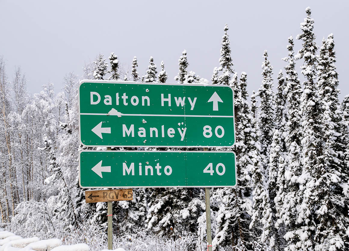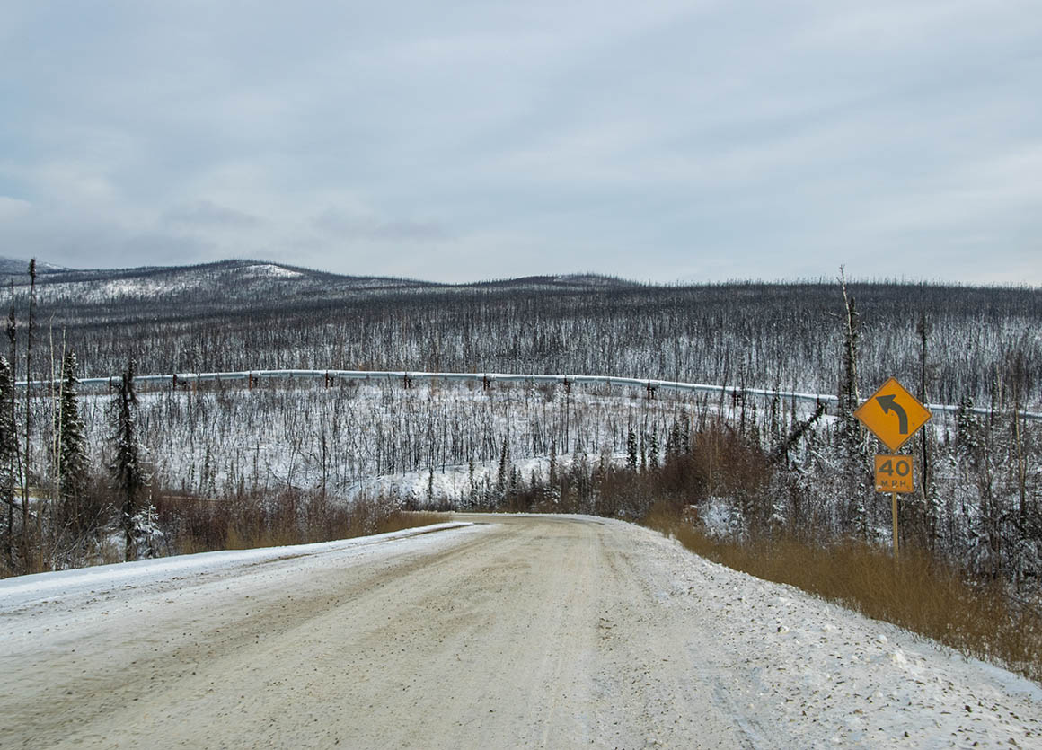 Nach 85 Meilen erreichten wir die Abzweigung zum Dalton Highway, auch bekannt als „Haul Road.“ Diese Straße, die der Versorgung der Trans-Alaska-Pipeline dient, gilt als eine der letzten berühmt-berüchtigten Abenteuerstraßen. Sie erstreckt sich über satte 416 Meilen durch eine wilde, raue und unberührte Natur.